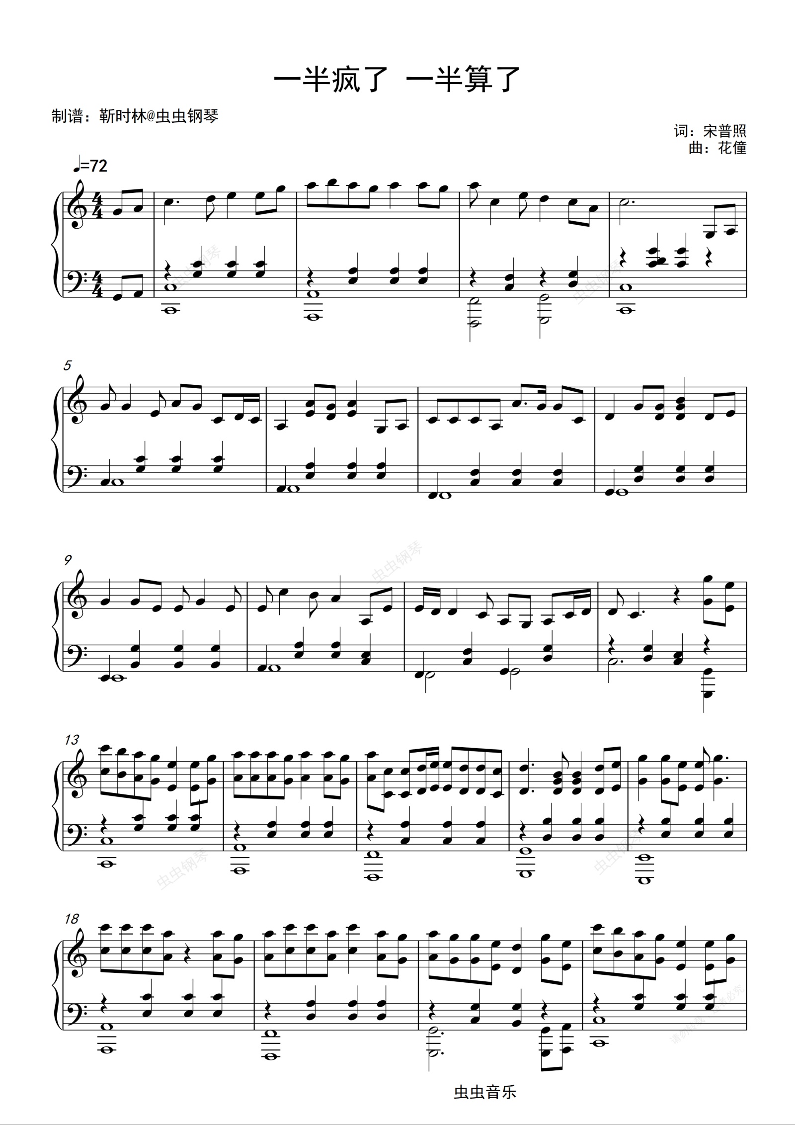 钢琴谱:《一半疯了 一半算了》C调简易弹奏