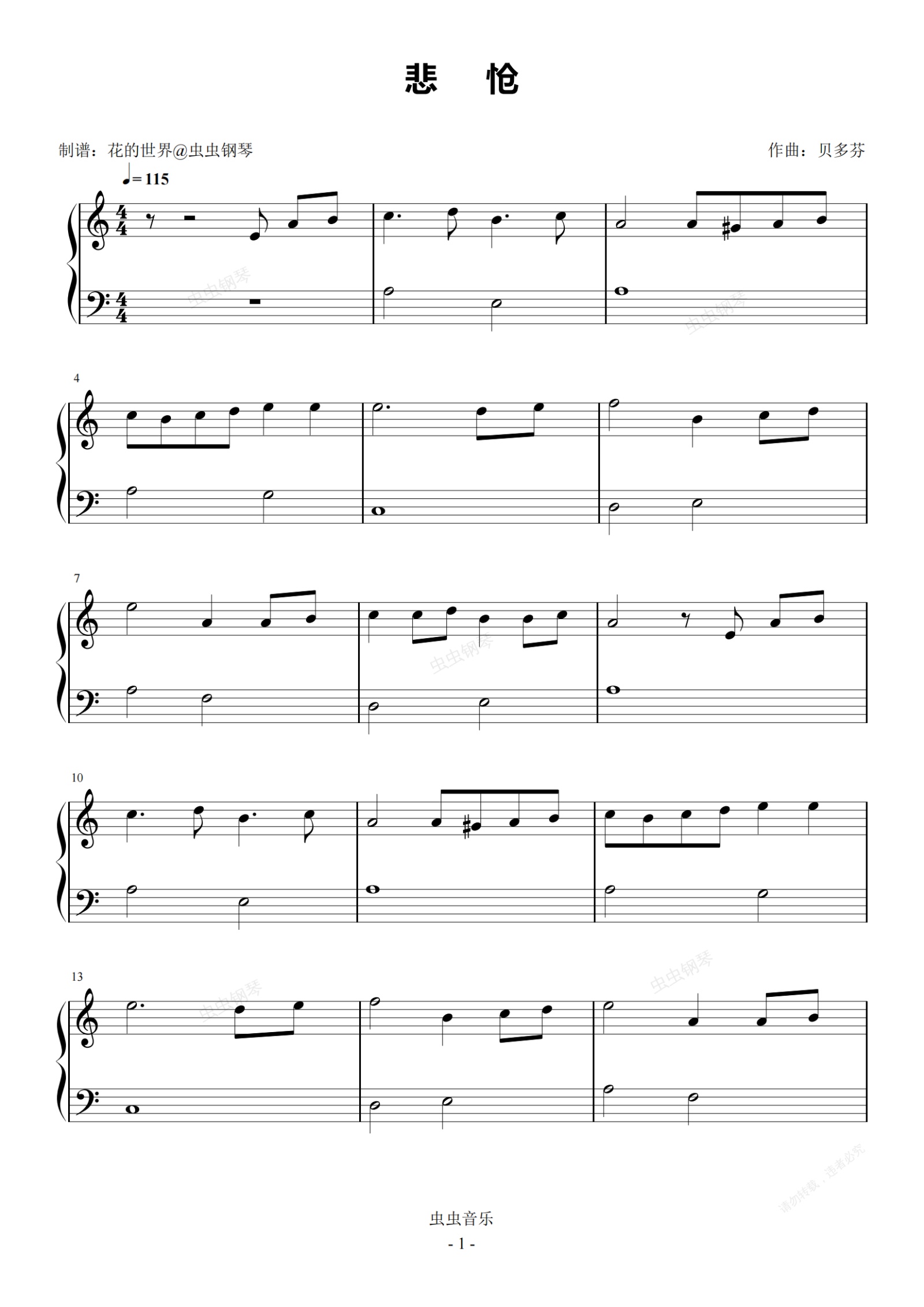钢琴谱:悲怆奏鸣曲第三乐章 C调简单版 贝多芬