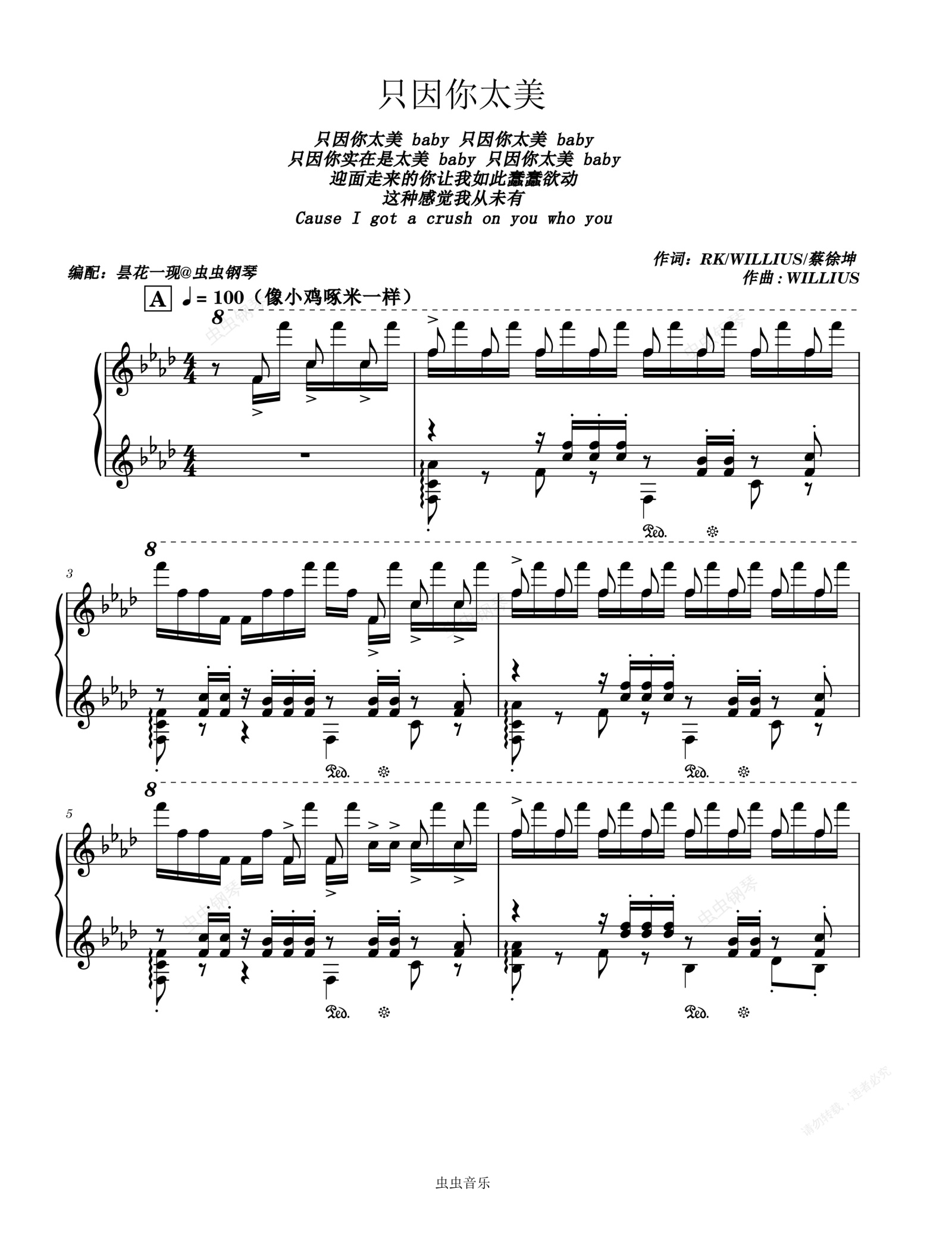 钢琴谱:只因你太美(Just because you are so beautiful)