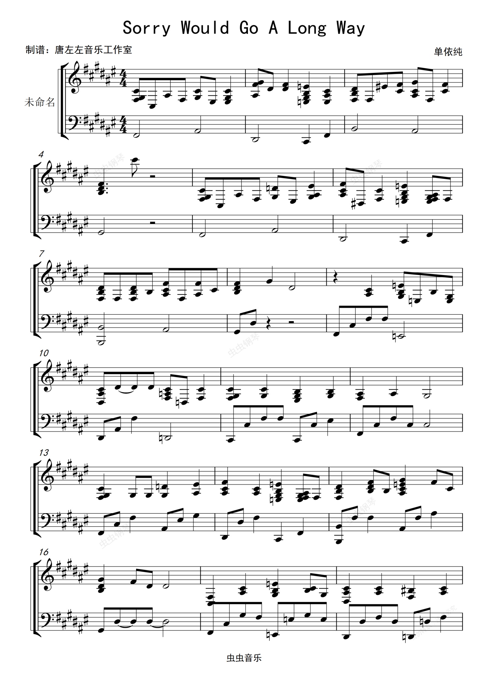 钢琴谱:Sorry Would Go A Long Way 单依纯
