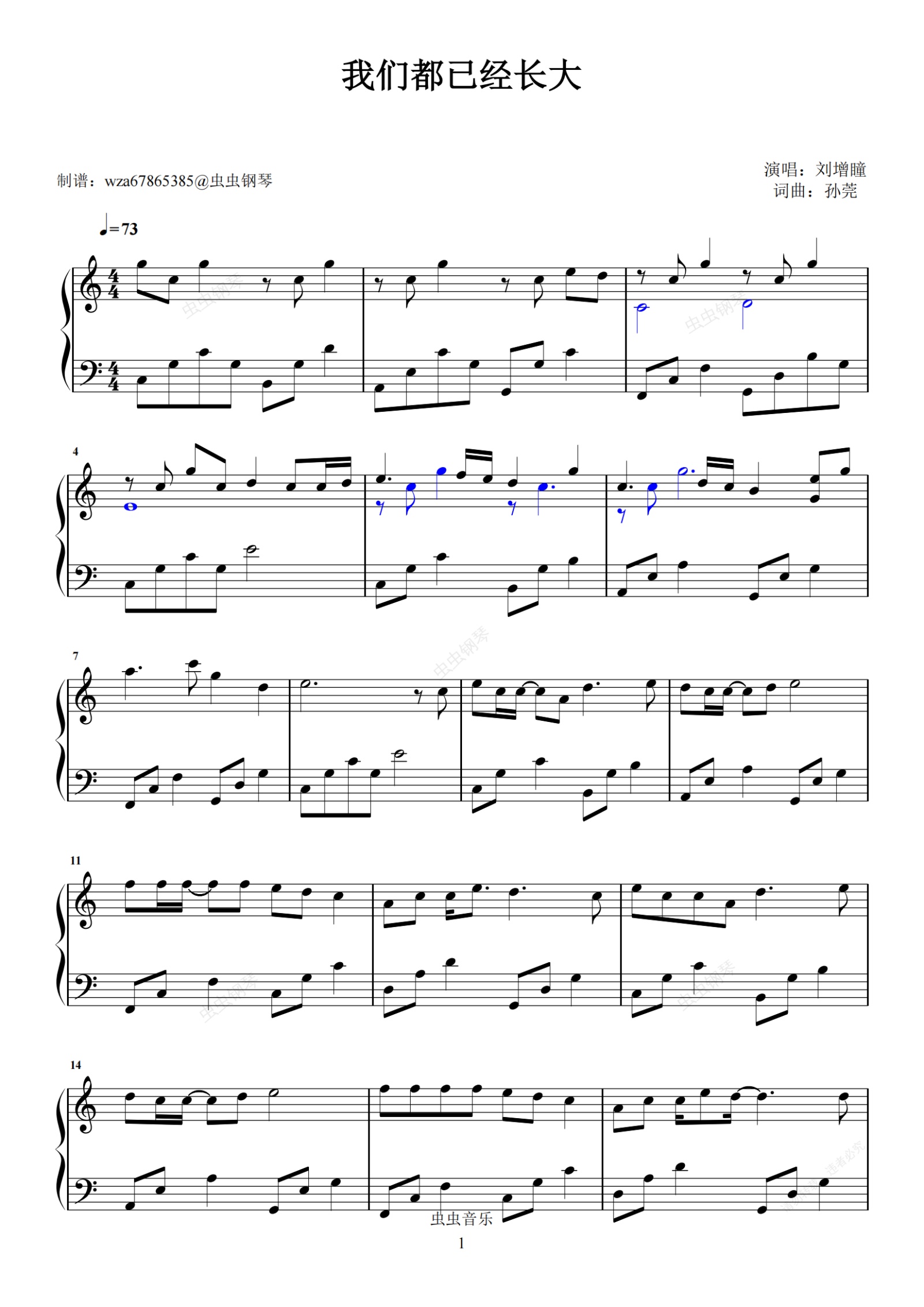 钢琴谱:我们都已经长大
