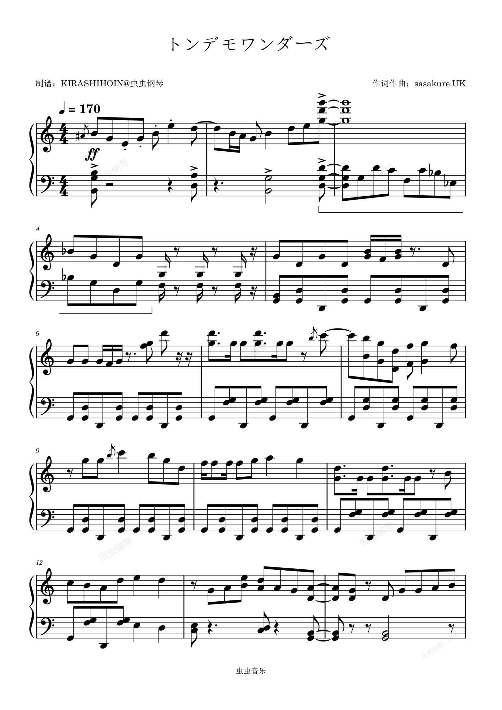 钢琴谱:トンデモワンダーズ/不可思议的奇迹 - sasakure.UK
