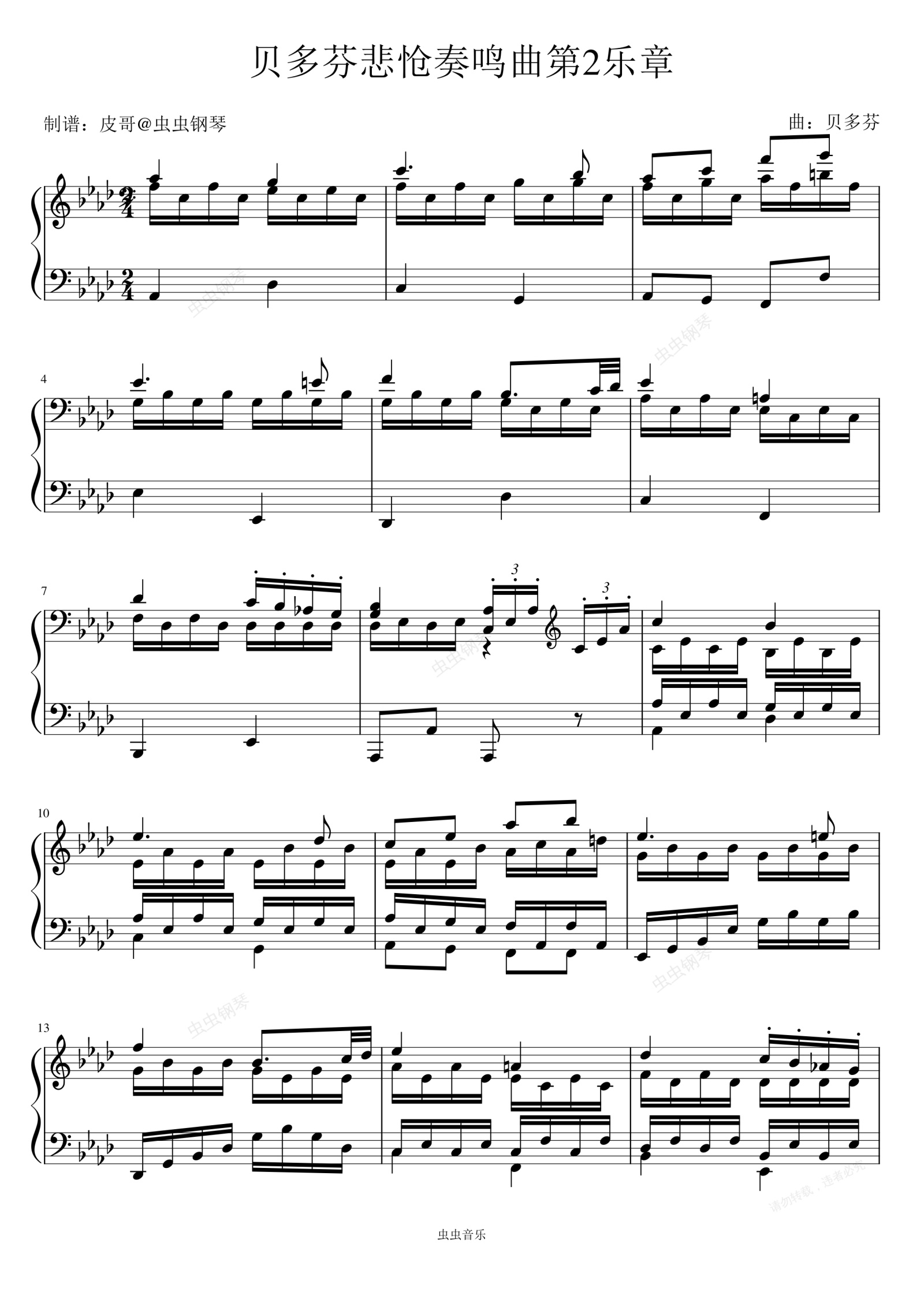 钢琴谱:悲怆奏鸣曲第二乐章 原版钢琴谱