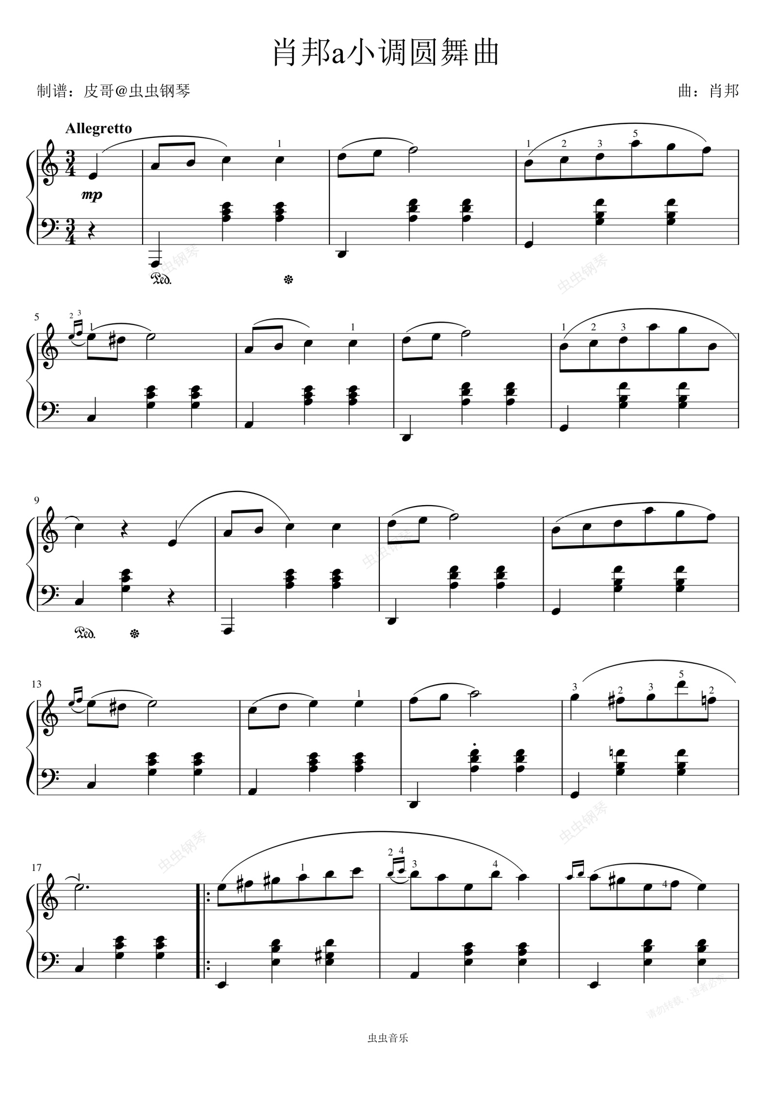 钢琴谱:肖邦a小调圆舞曲 原版钢琴谱