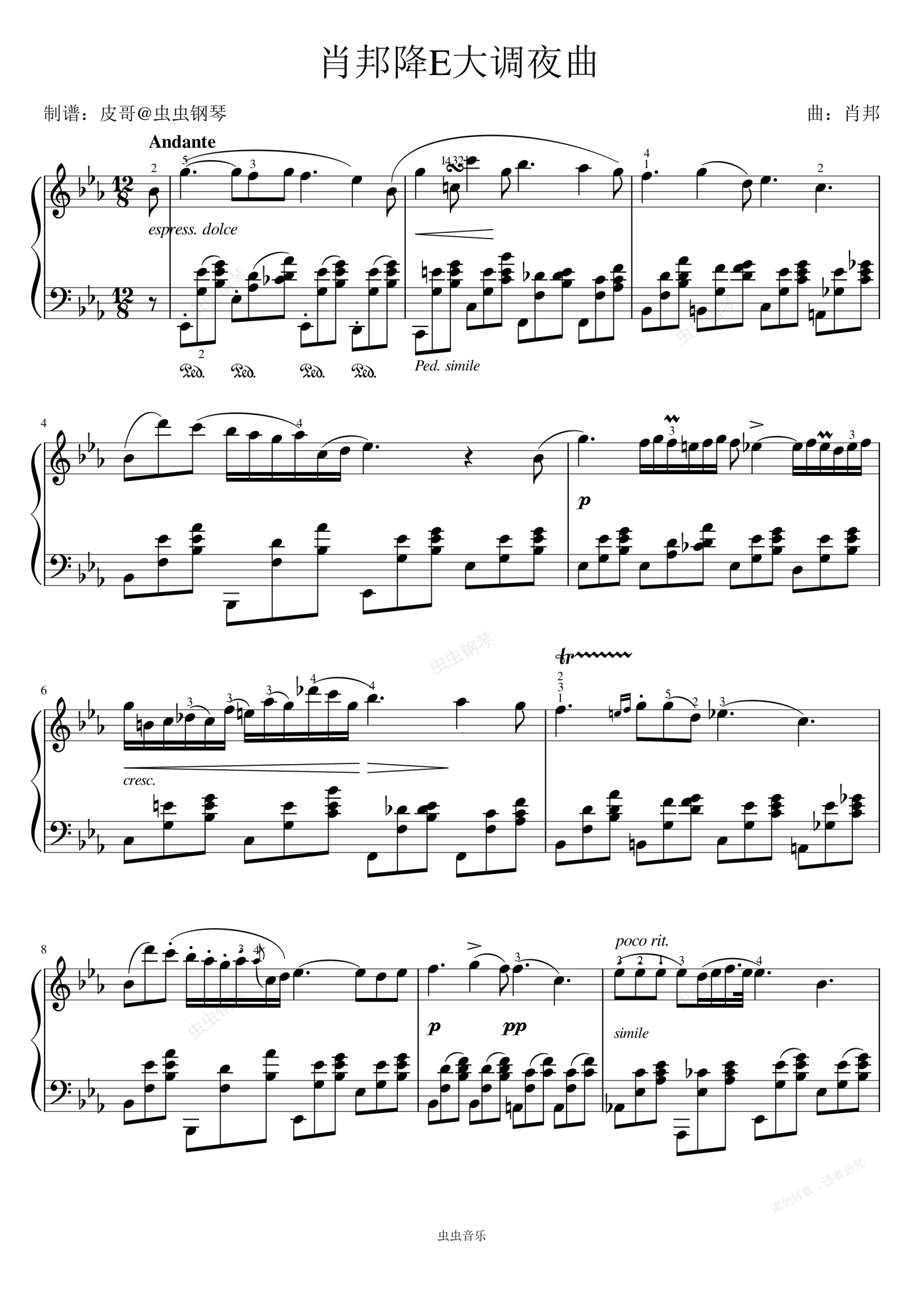 钢琴谱:肖邦降E大调夜曲 原版钢琴谱