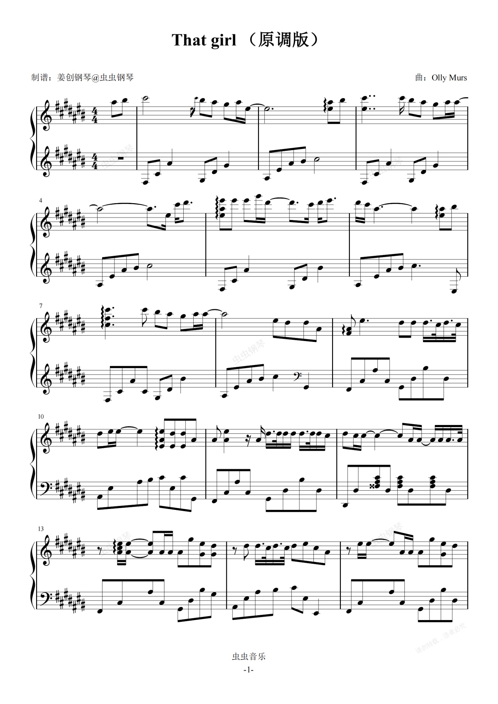 钢琴谱:that girl(原调版) 完美演奏版