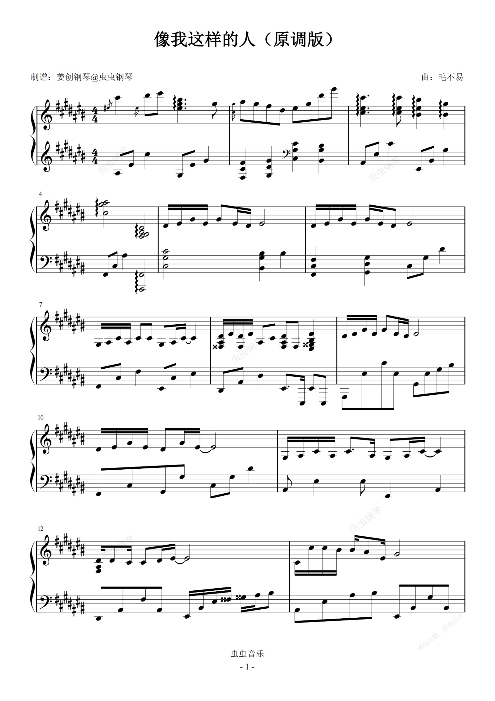 钢琴谱:像我这样的人(原调版) 完美演奏版