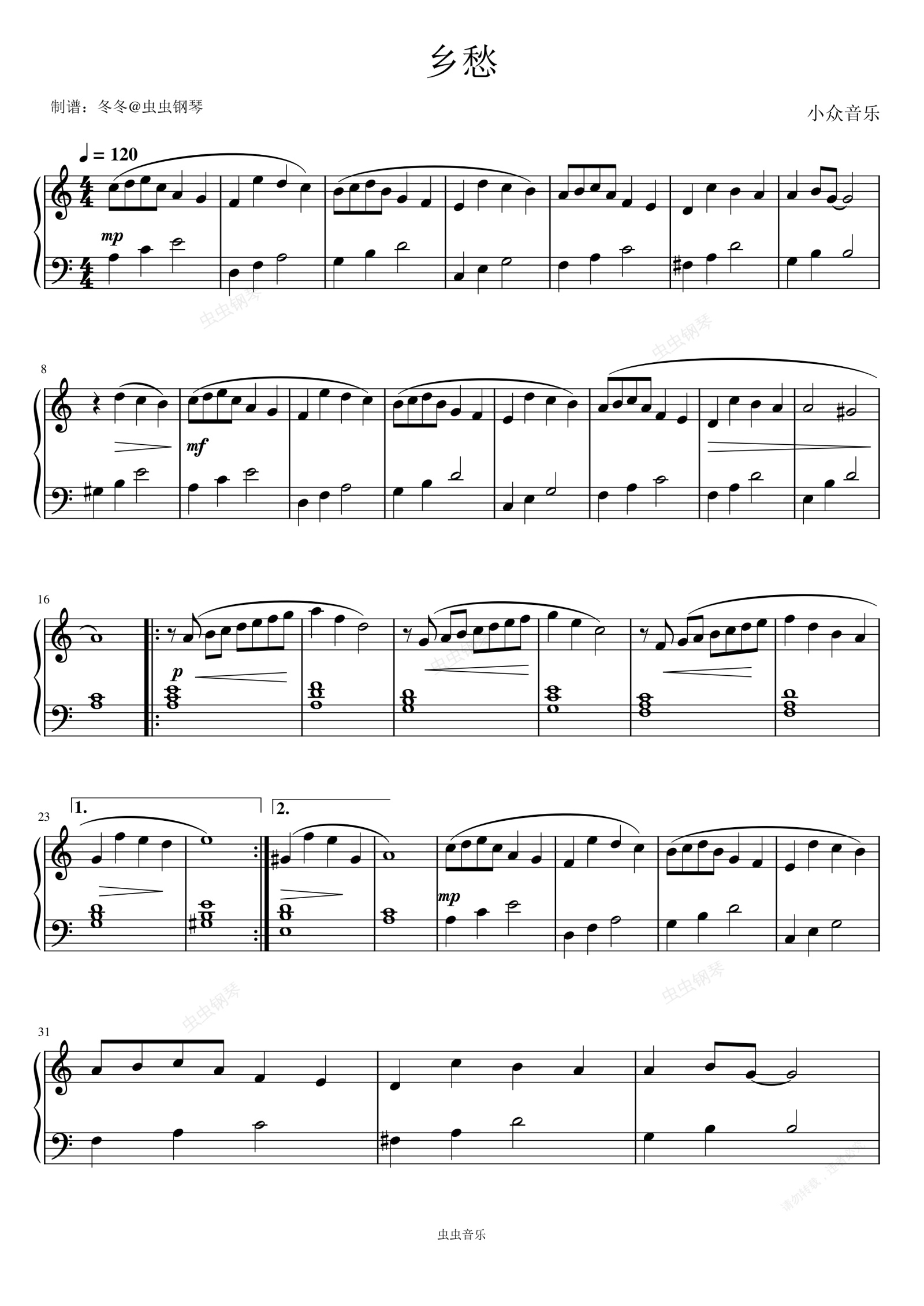 钢琴谱:乡愁