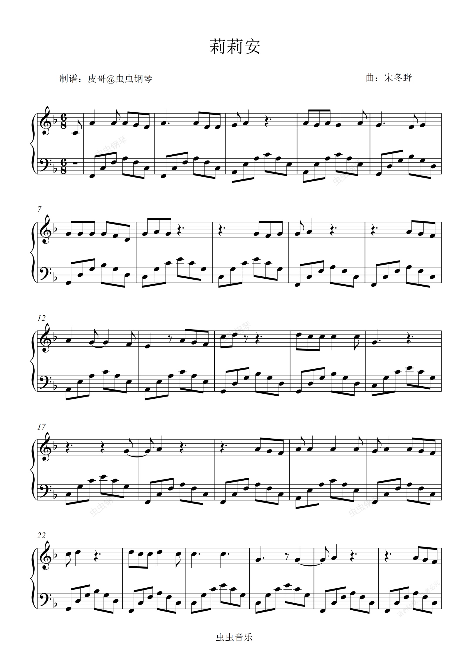 钢琴谱:莉莉安 零基础版本