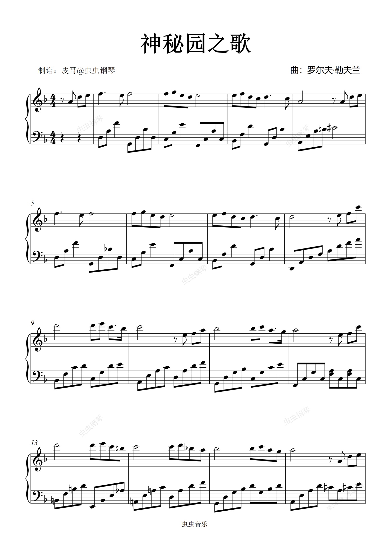 钢琴谱:神秘园之歌 零基础版本