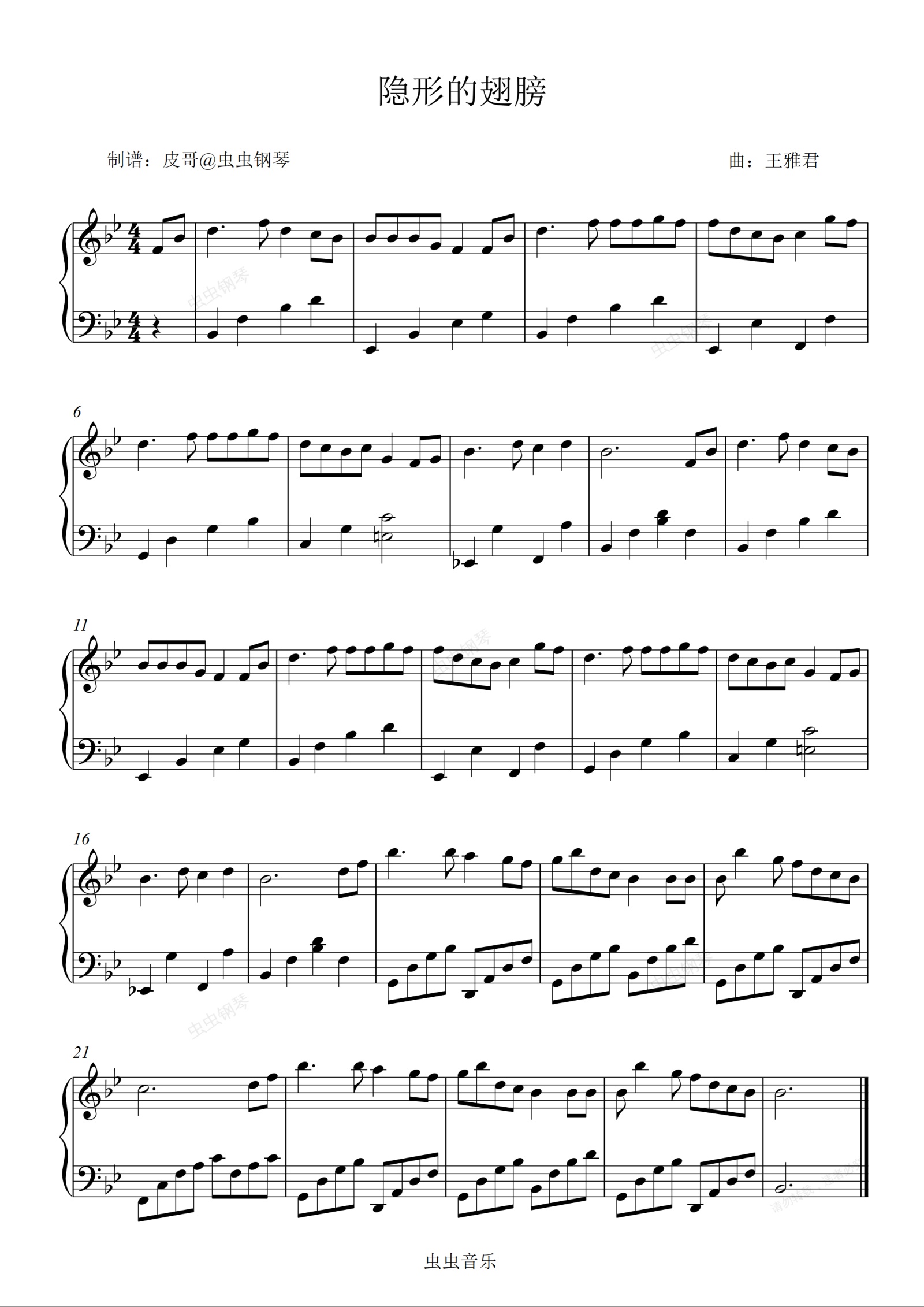 钢琴谱:隐形的翅膀 零基础版本