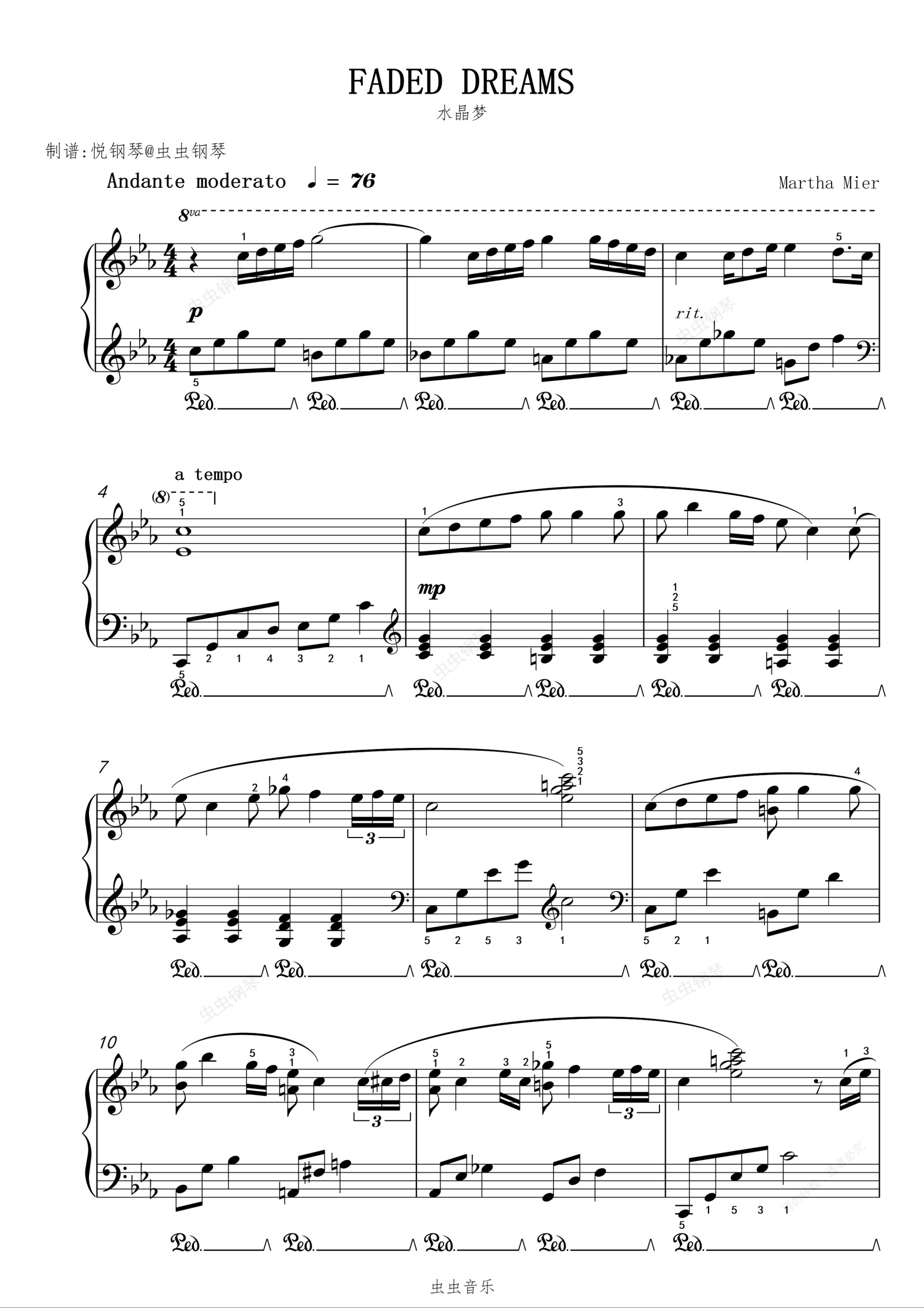 钢琴谱:水晶梦//Faded Dreams【浪漫-治愈】