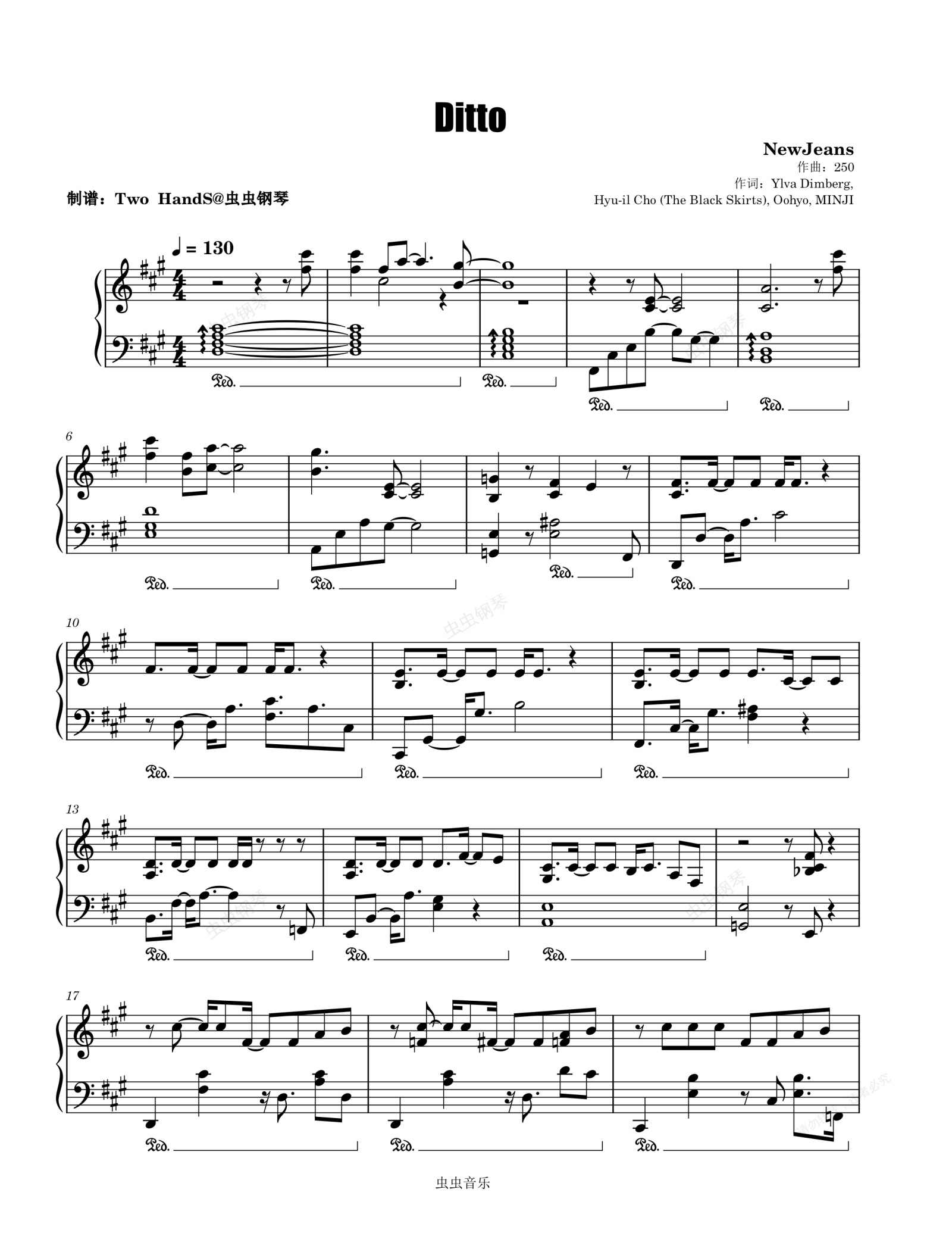 钢琴谱:钢琴演奏版【Ditto -NewJeans】原调 TwO HandS改编