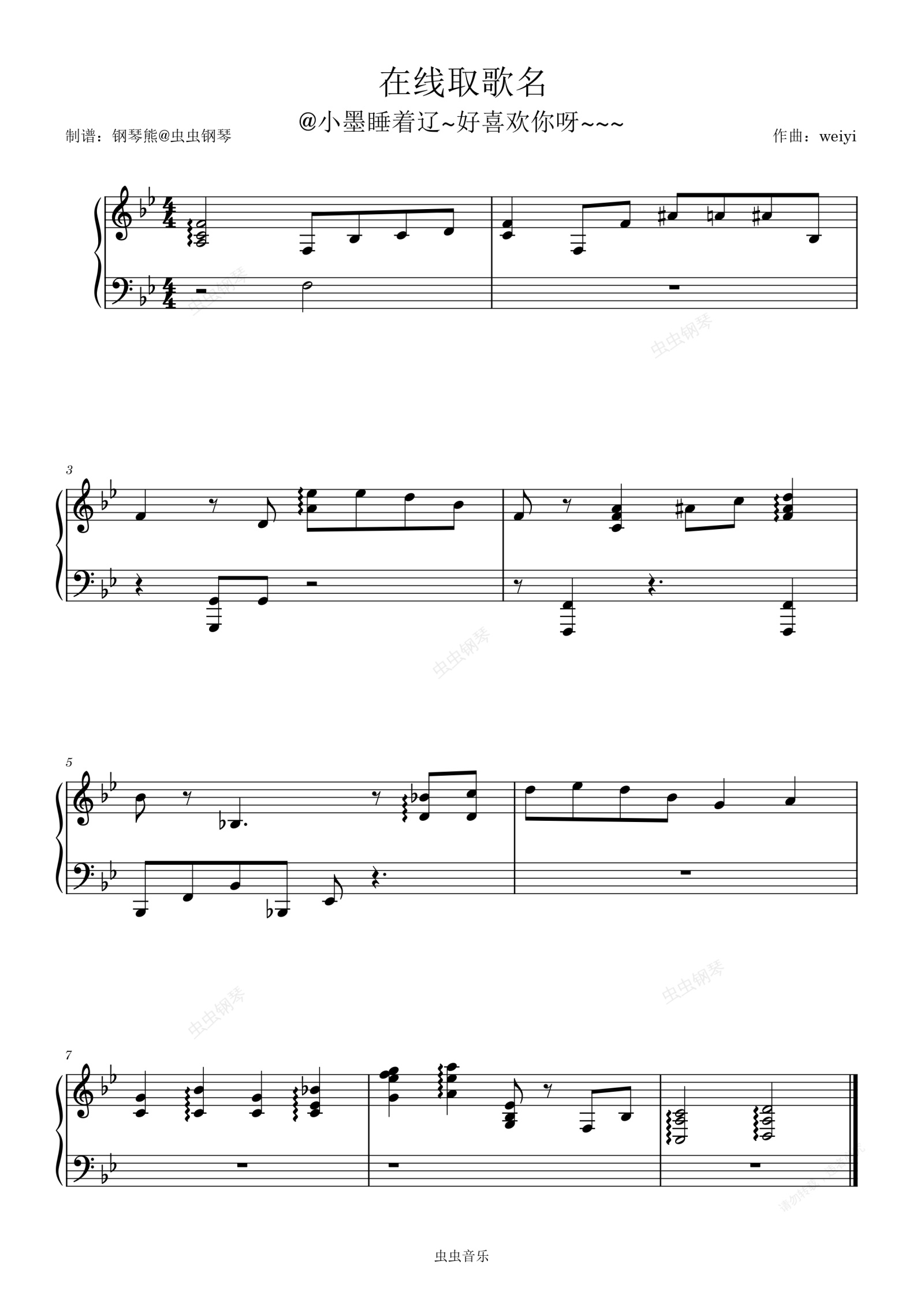 钢琴谱:《在线取歌名》喜欢的兄弟记得点收藏 墨宝~祝我们情人节快乐~熊熊永远爱你哟~😙😙😙