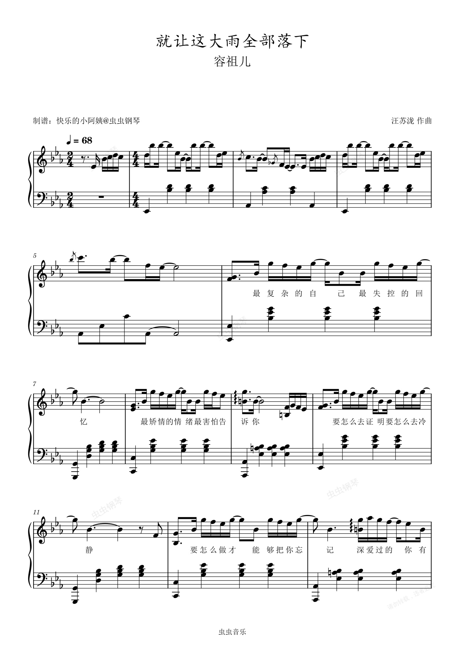 钢琴谱:就让这大雨全都落下 容祖儿 附歌词