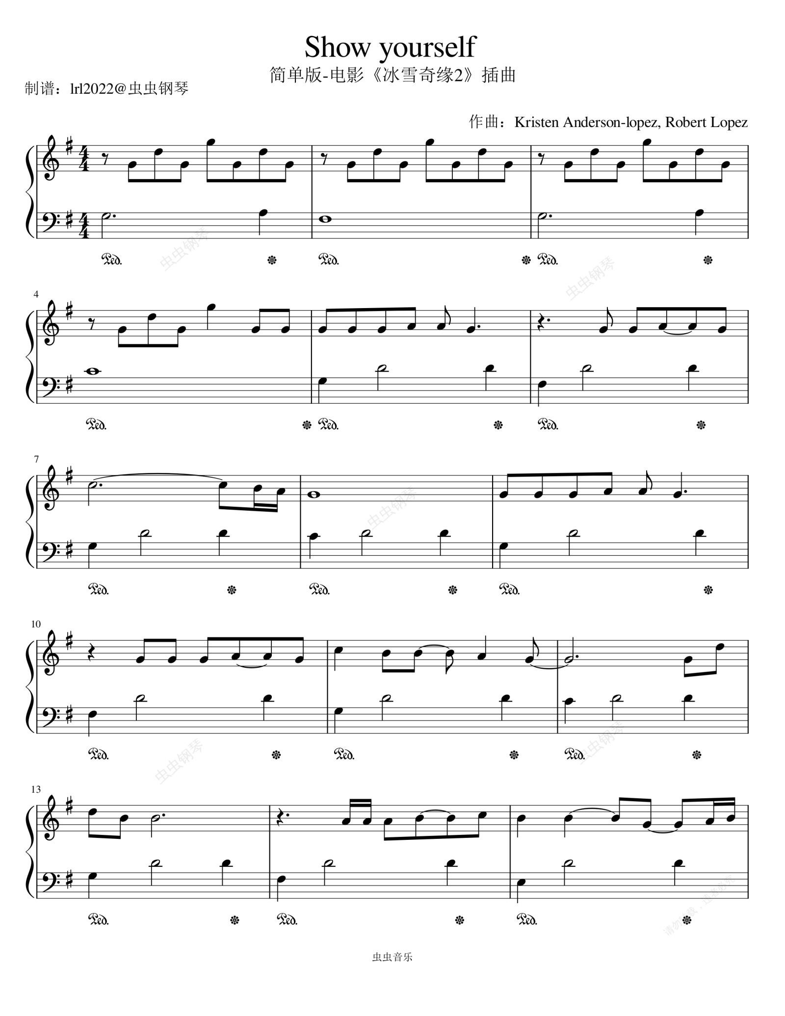 钢琴谱:Show Yourself-简单版-电影《冰雪奇缘2》插曲