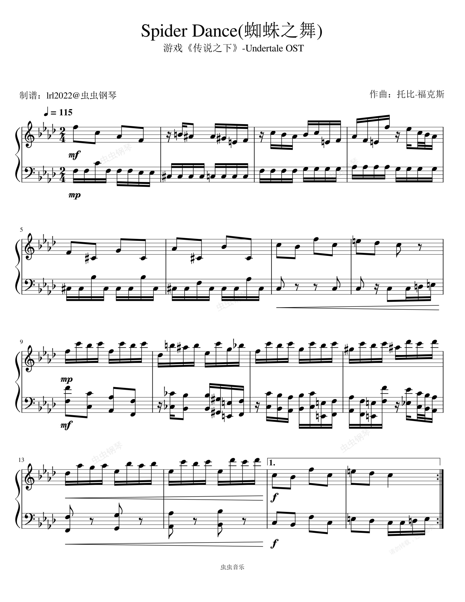 钢琴谱:Spider Dance(蜘蛛之舞) -游戏《传说之下》-Undertale OST