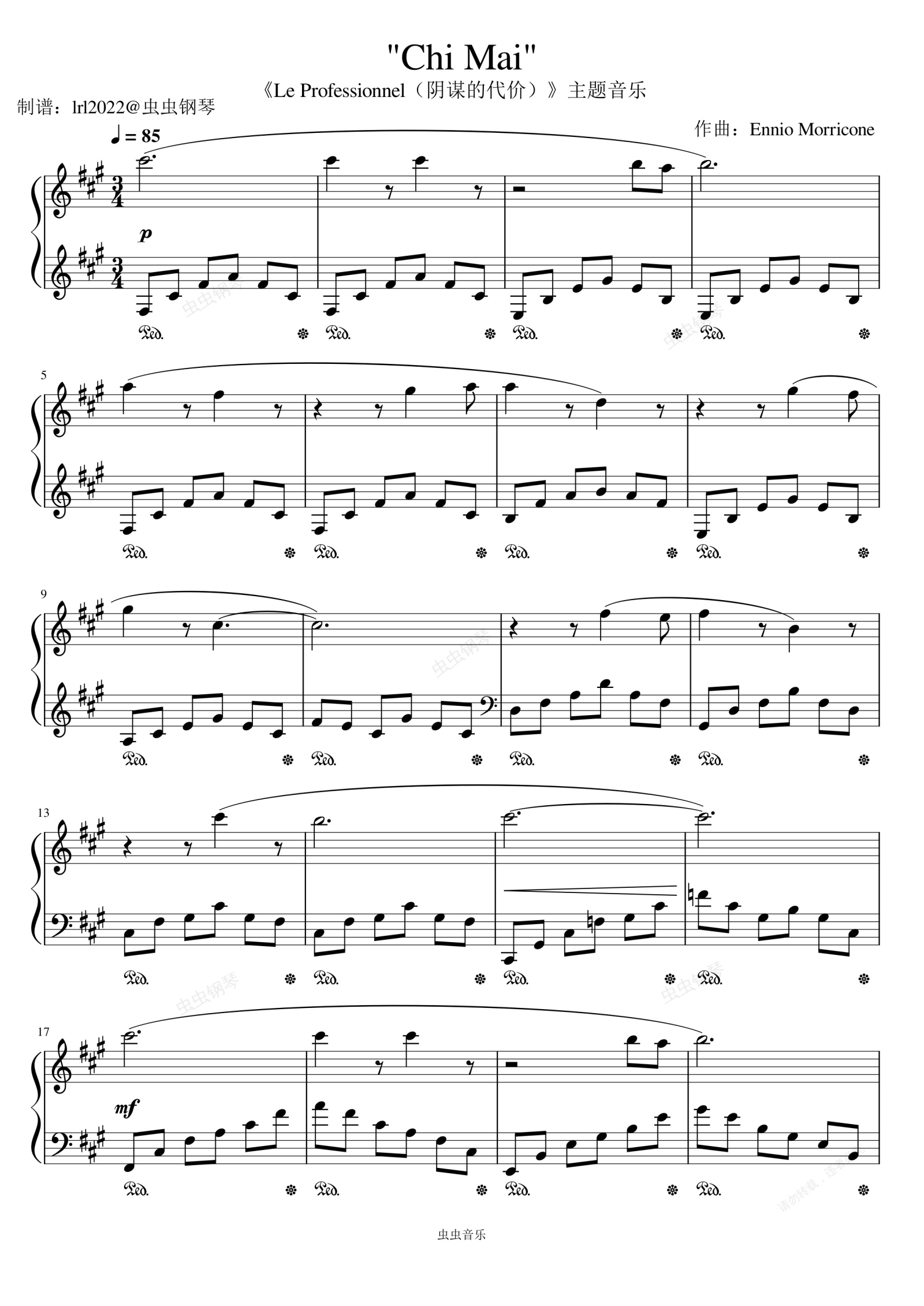 钢琴谱:"Chi Mai"“谁能不犯错”-《Le Professionnel(阴谋的代价)》主题音乐