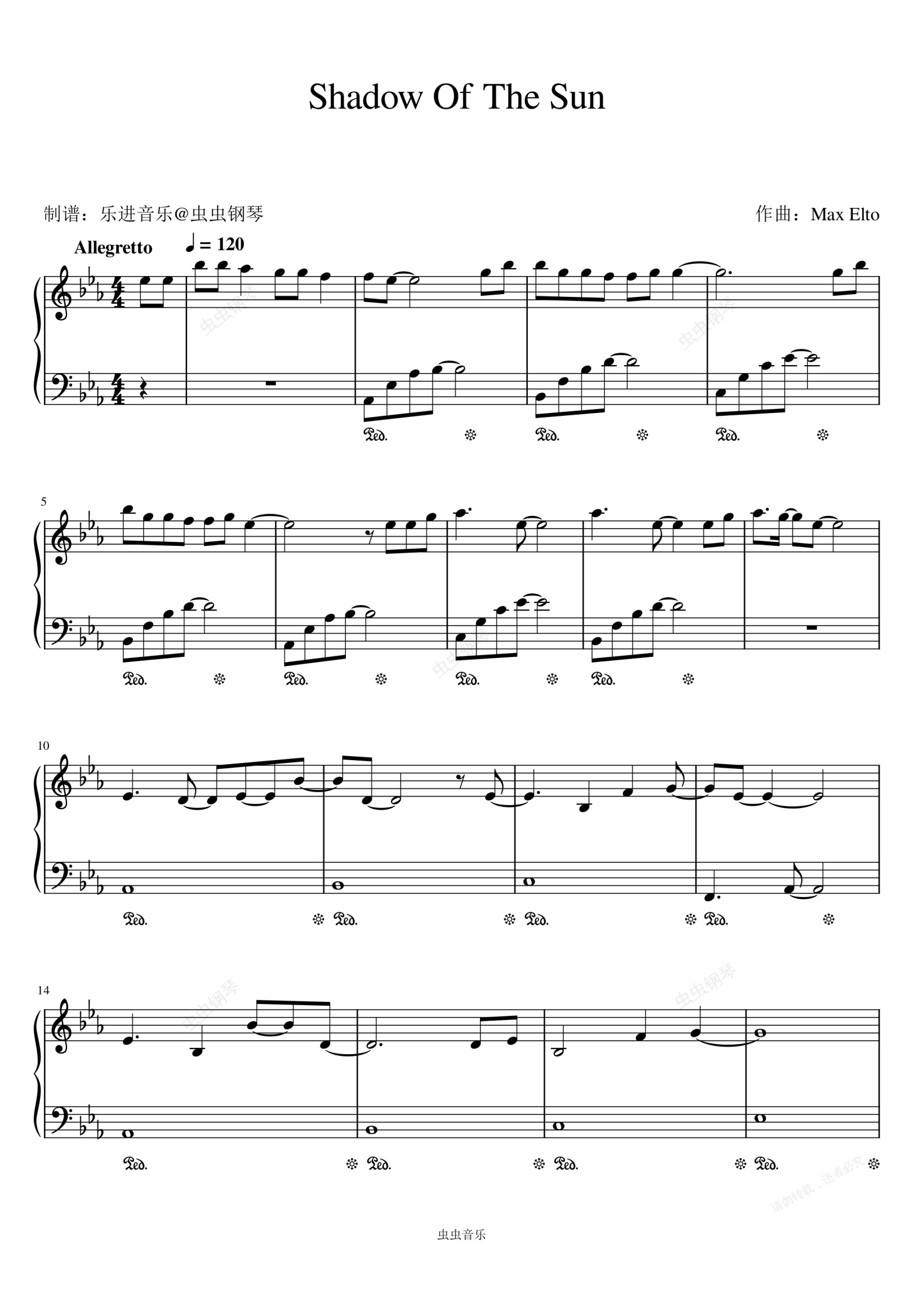 钢琴谱:《Shadow Of The Sun》原调