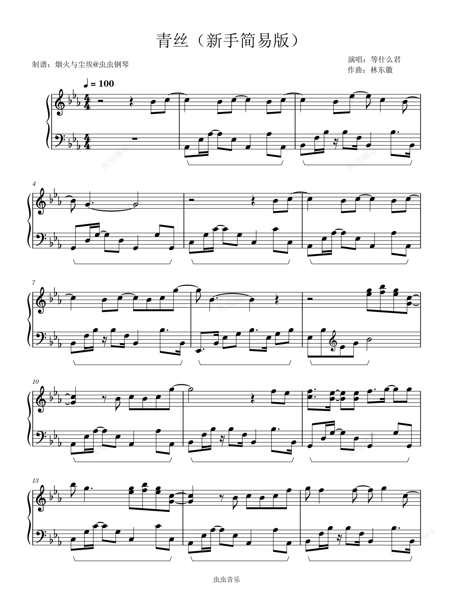 钢琴谱:青丝(简易动听版)