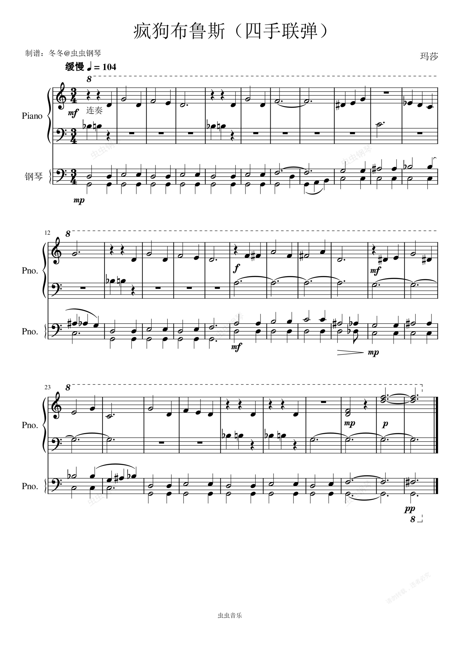 钢琴谱:疯狗布鲁斯(四手联弹)