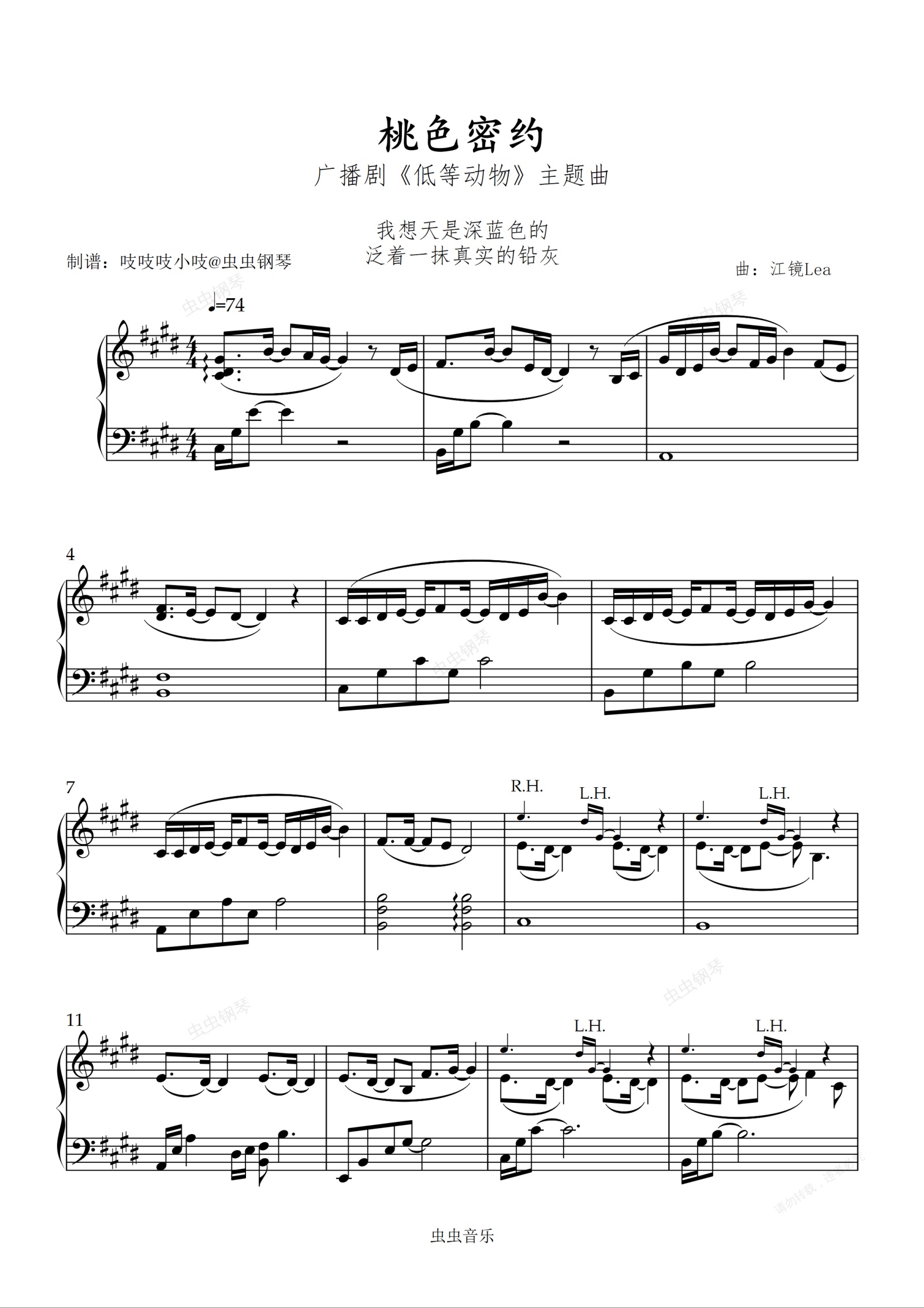 钢琴谱:桃色密约-#c 【初级难度】 吱吱编配 广播剧《低等动物》主题曲