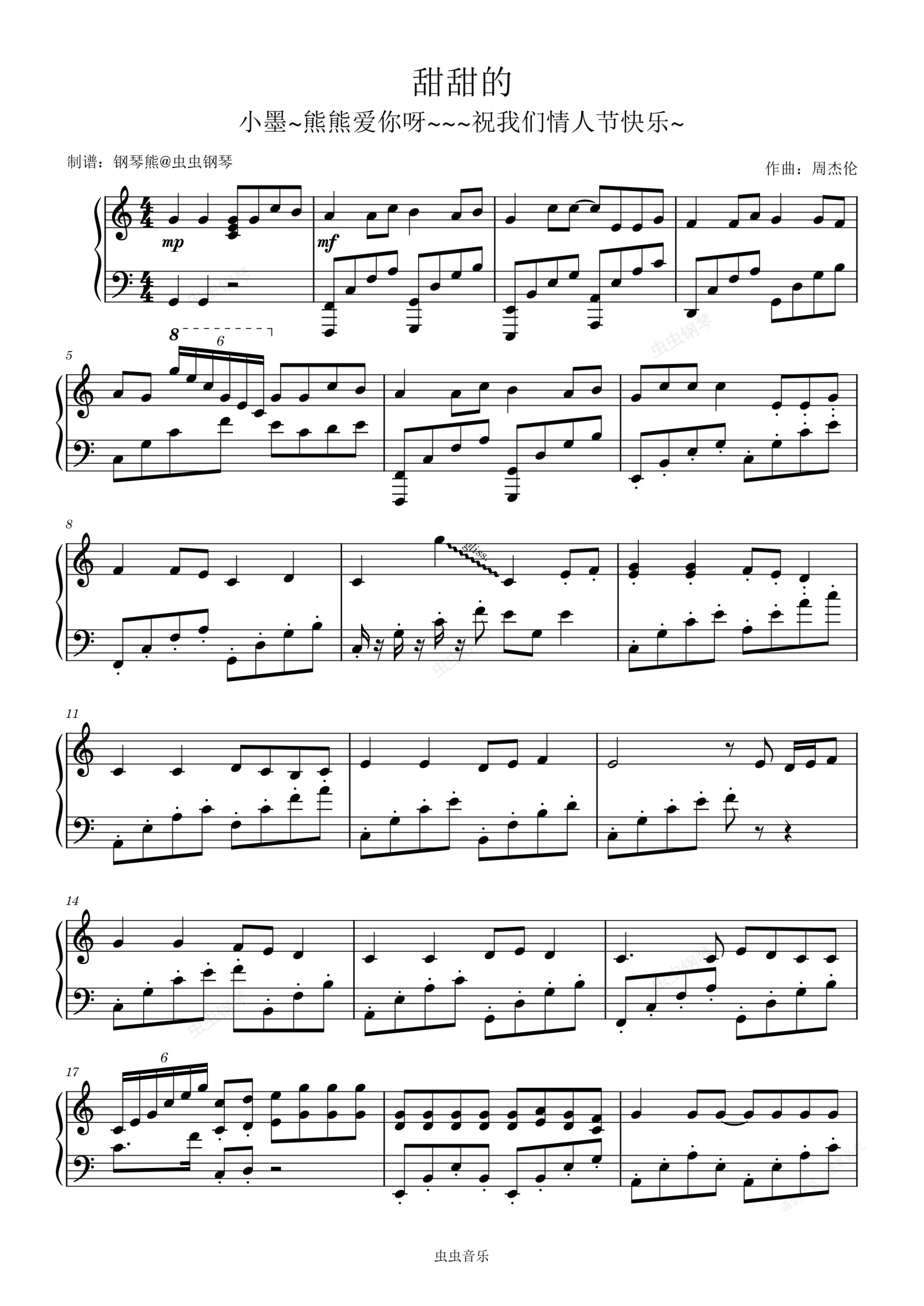 钢琴谱:C大调《甜甜的》钢琴极限还原版~ 情人节快乐~喜欢的兄弟记得点♥♥♥👇👇👇爱你哟我的小墨~