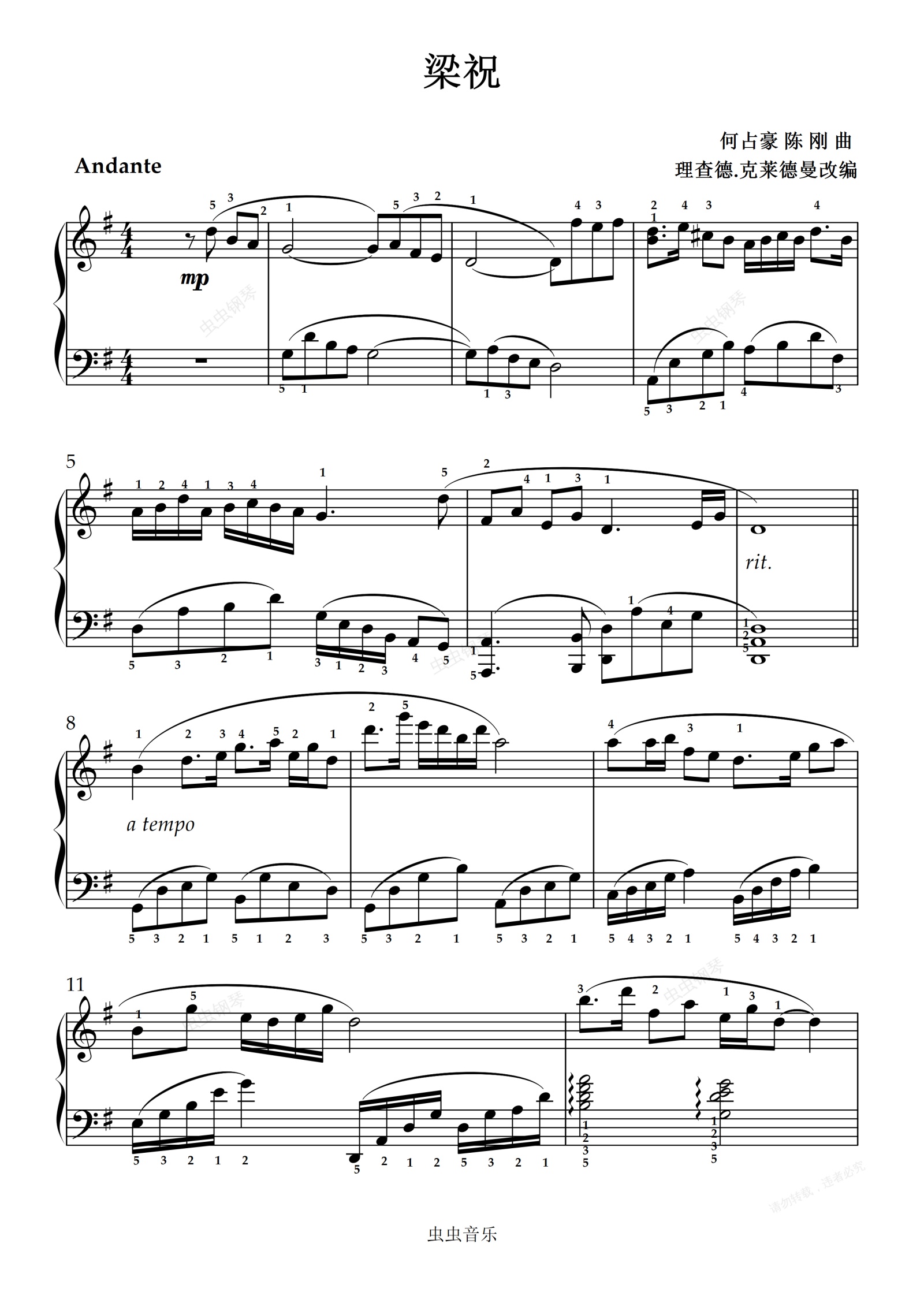 钢琴谱:梁祝