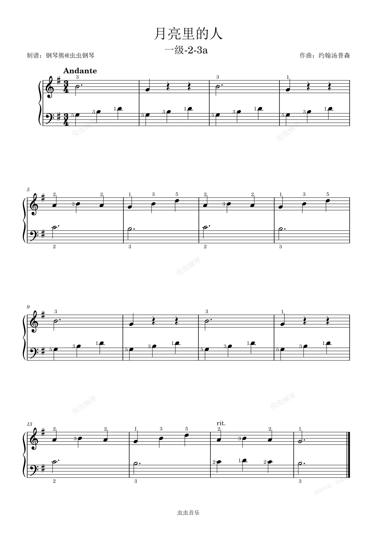 钢琴谱:一级-2.3.月亮里的人