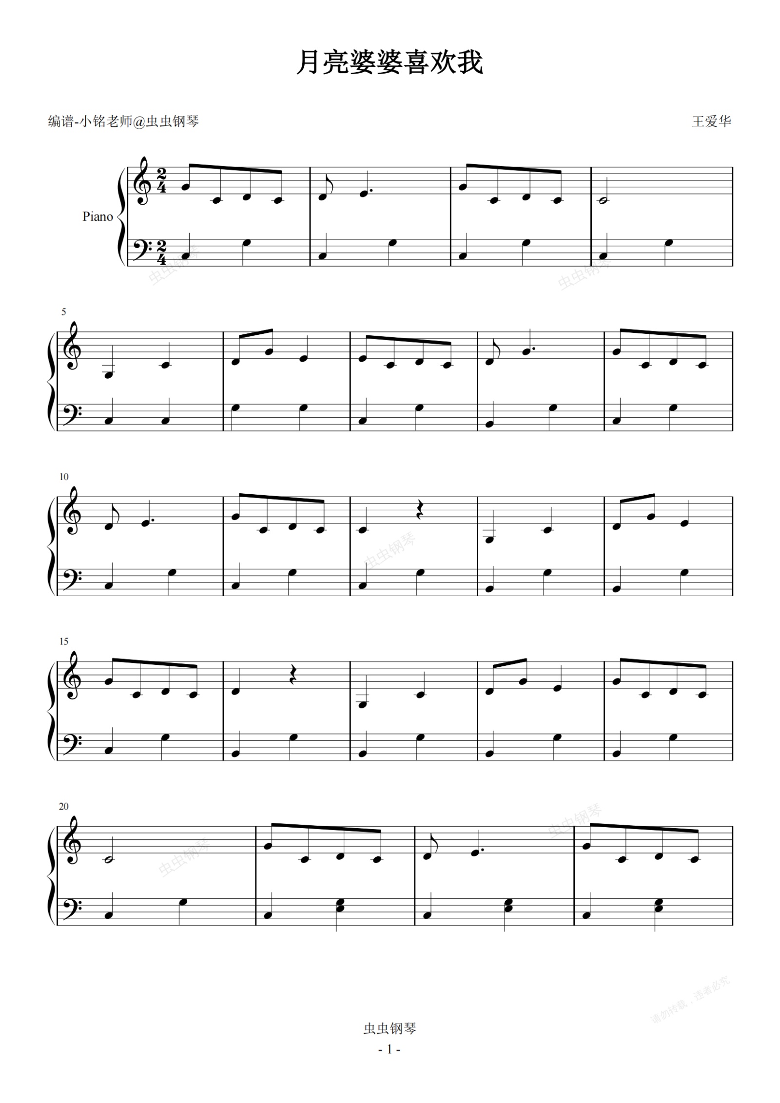 钢琴谱:月亮婆婆喜欢我【快乐学儿歌】