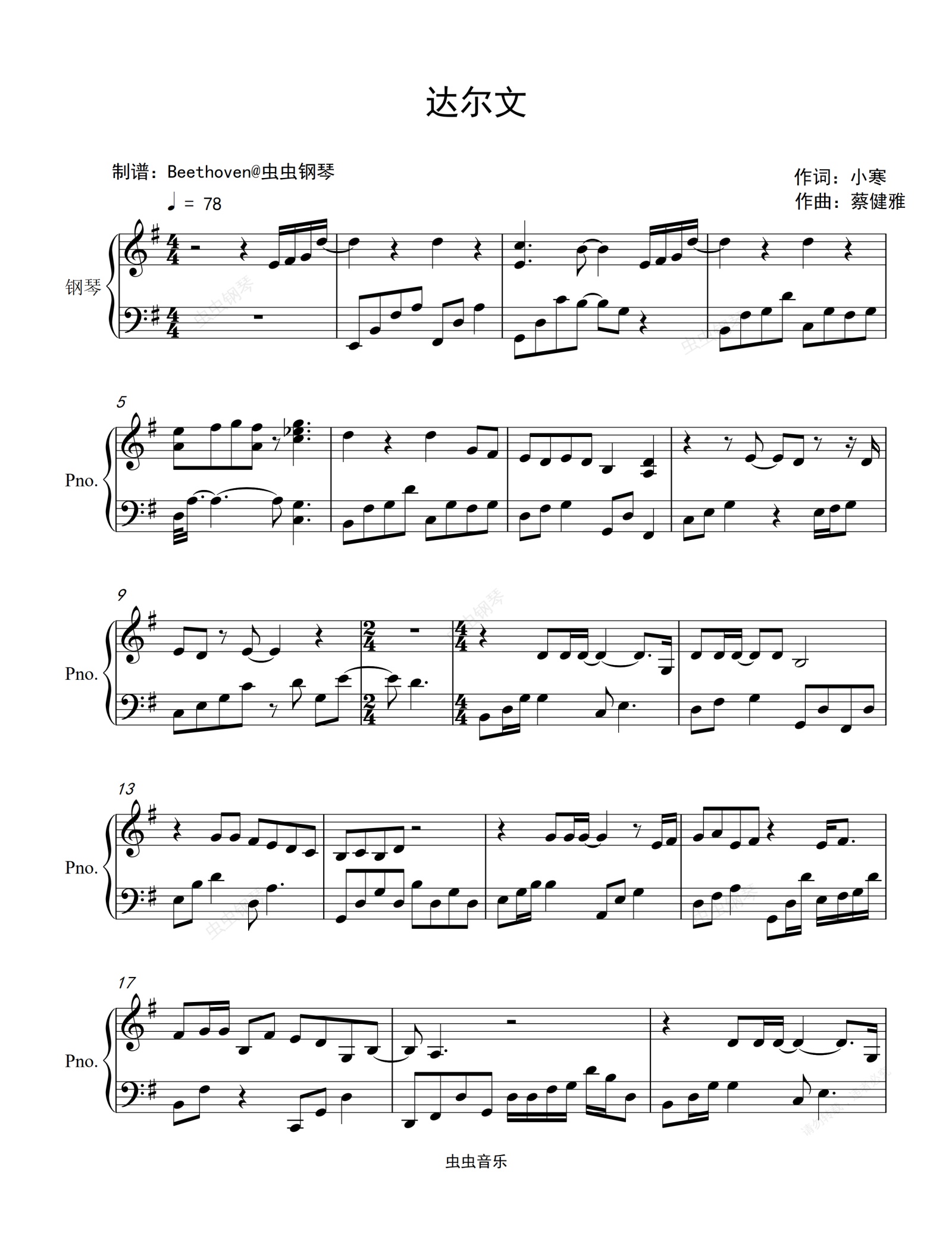 钢琴谱:达尔文-蔡健雅