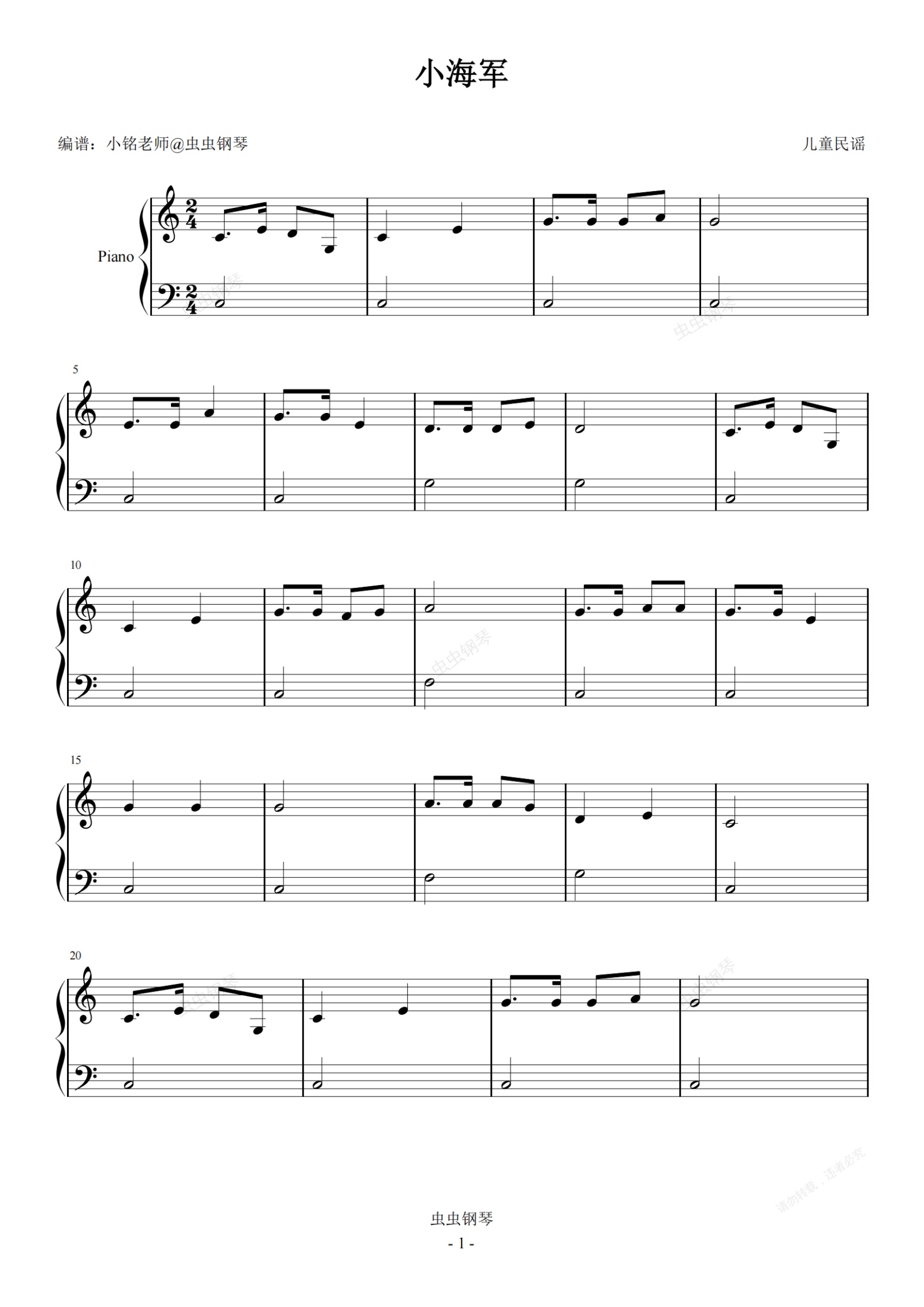 钢琴谱:小海军【快乐学儿歌】