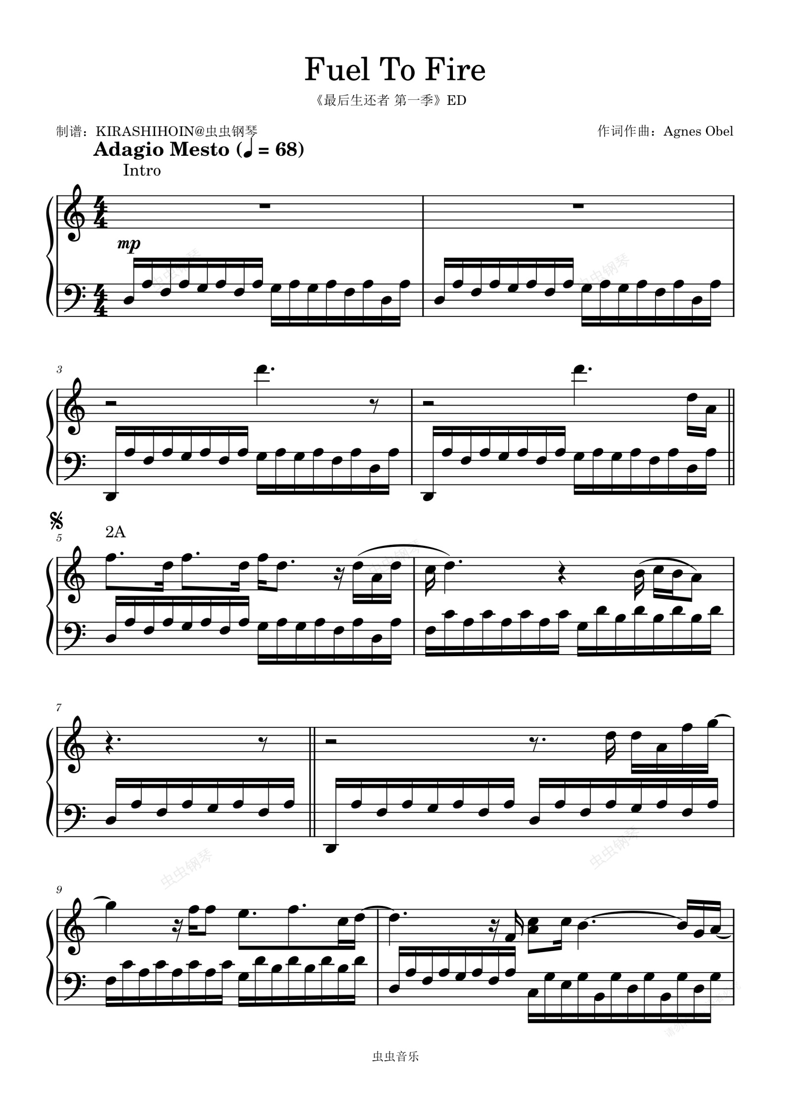 钢琴谱:Fuel To Fire(《最后生还者 第一季》ED)- Agnes Obel