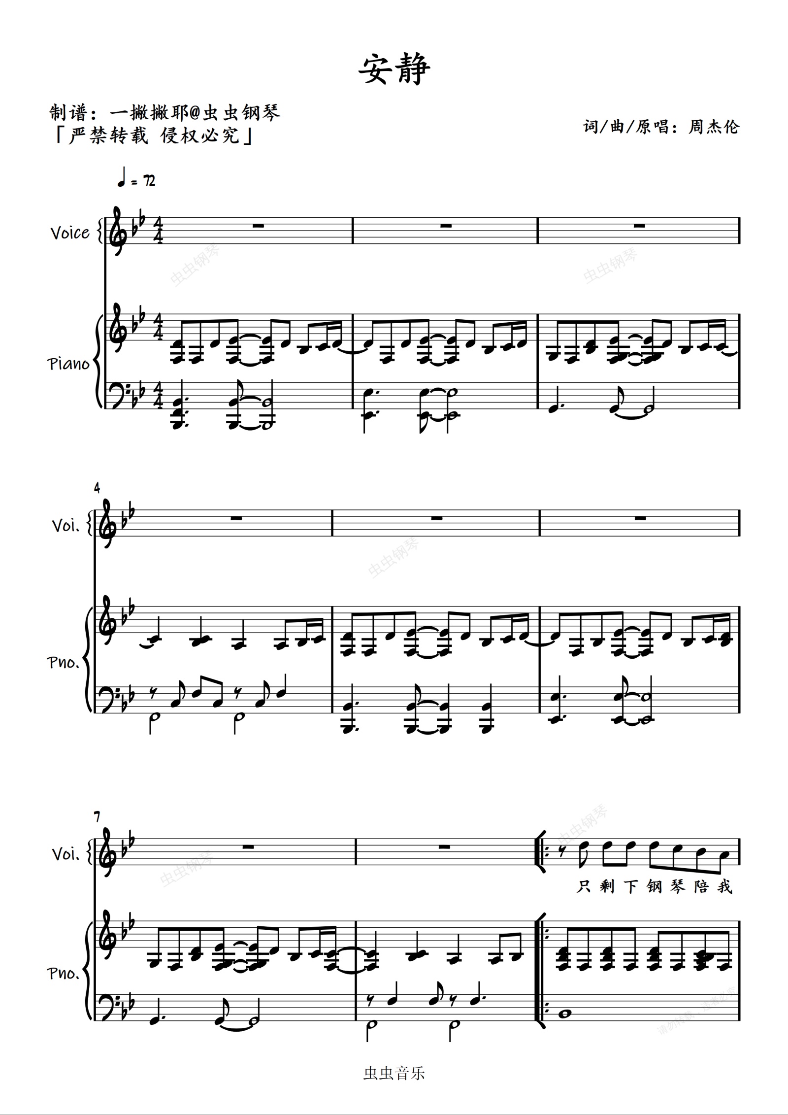 钢琴谱:极限还原弹唱《安静》周杰伦「一撇撇耶」