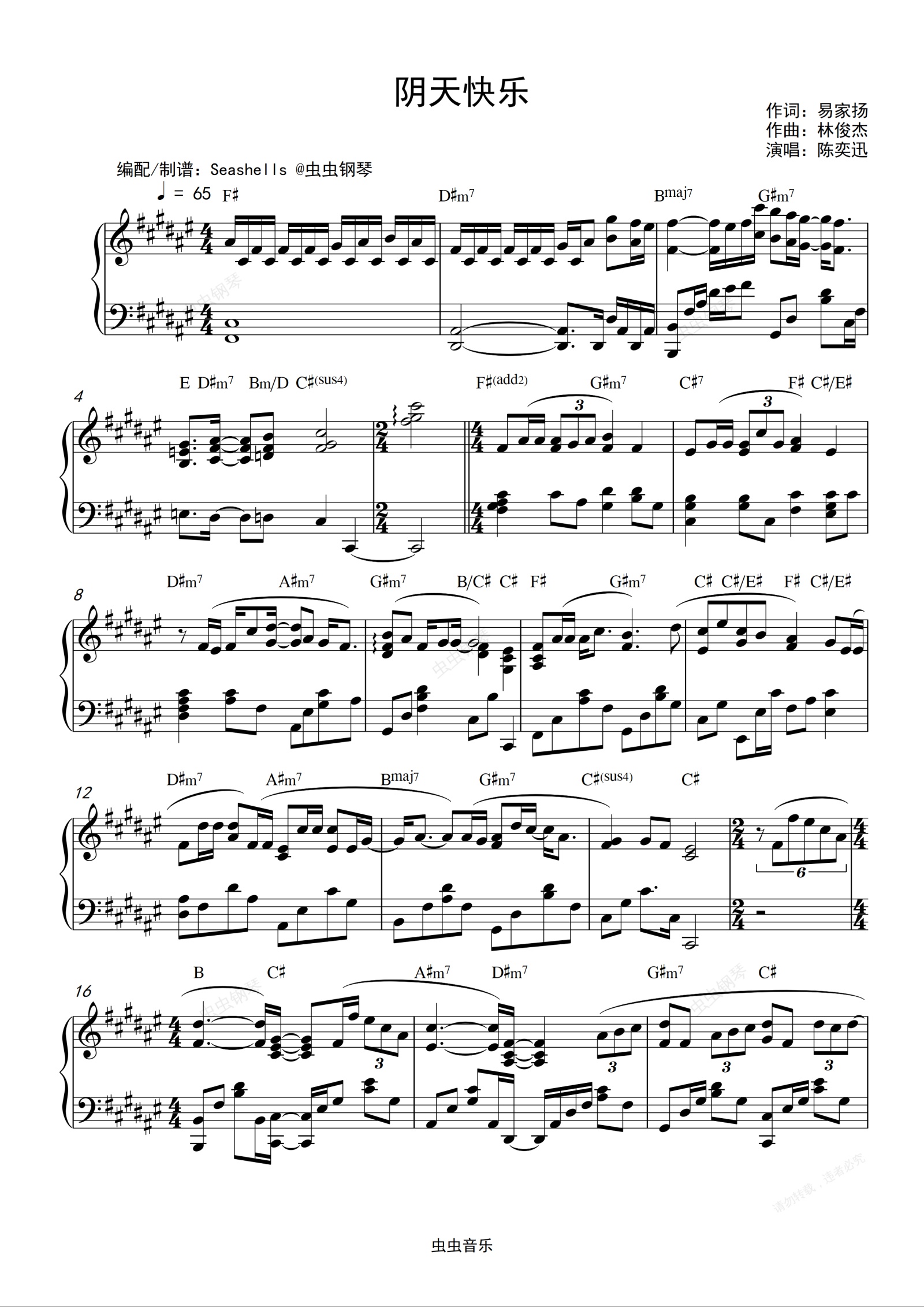 钢琴谱:陈奕迅-《阴天快乐》精编钢琴独奏 F#(原调)