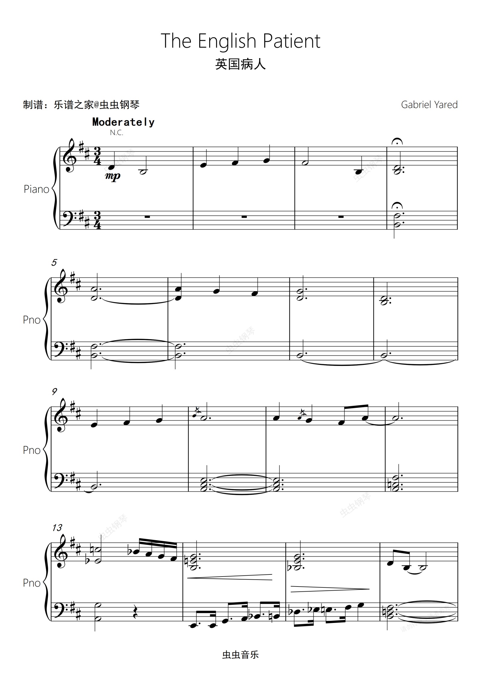 钢琴谱:简易版:The English Patient英国病人 独奏钢琴谱