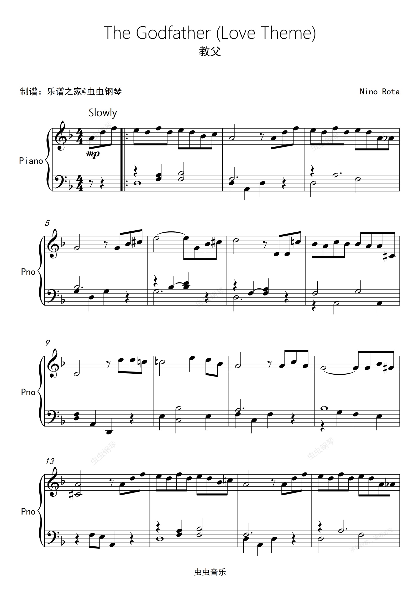 钢琴谱:简易版:教父The Godfather (Love Theme) 独奏钢琴谱