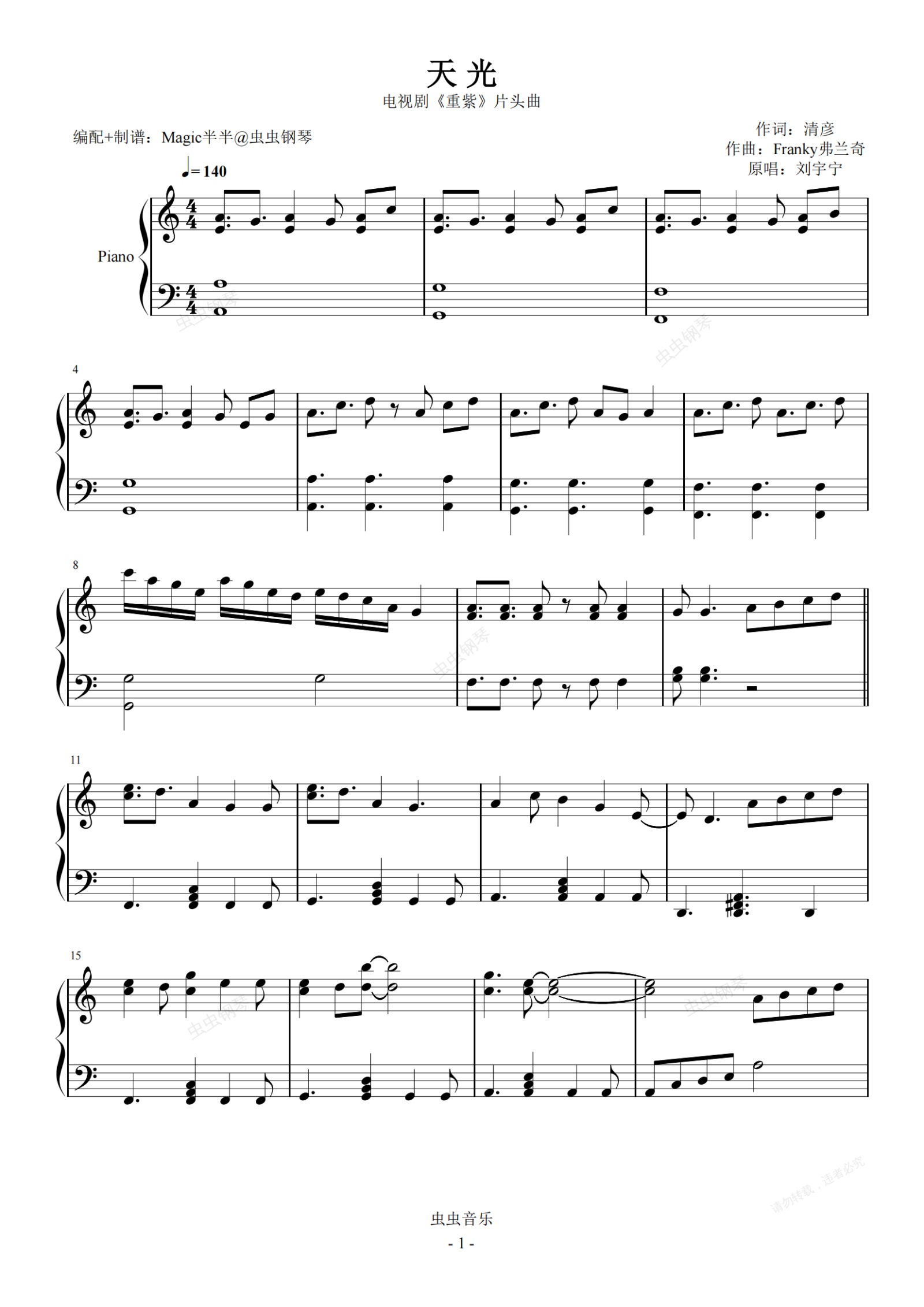 钢琴谱:天光(C调/动感版) 电视剧<重紫>片头曲