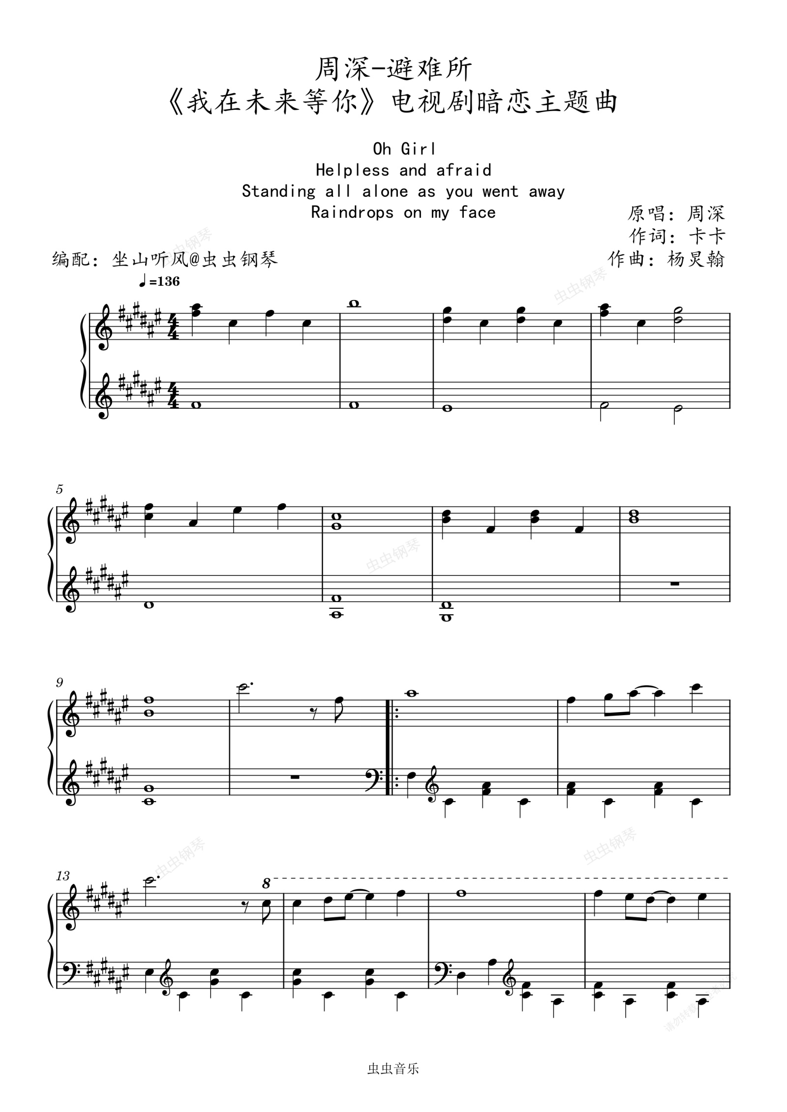 钢琴谱:周深《避难所》—— 《我在未来等你》电视剧暗恋主题曲