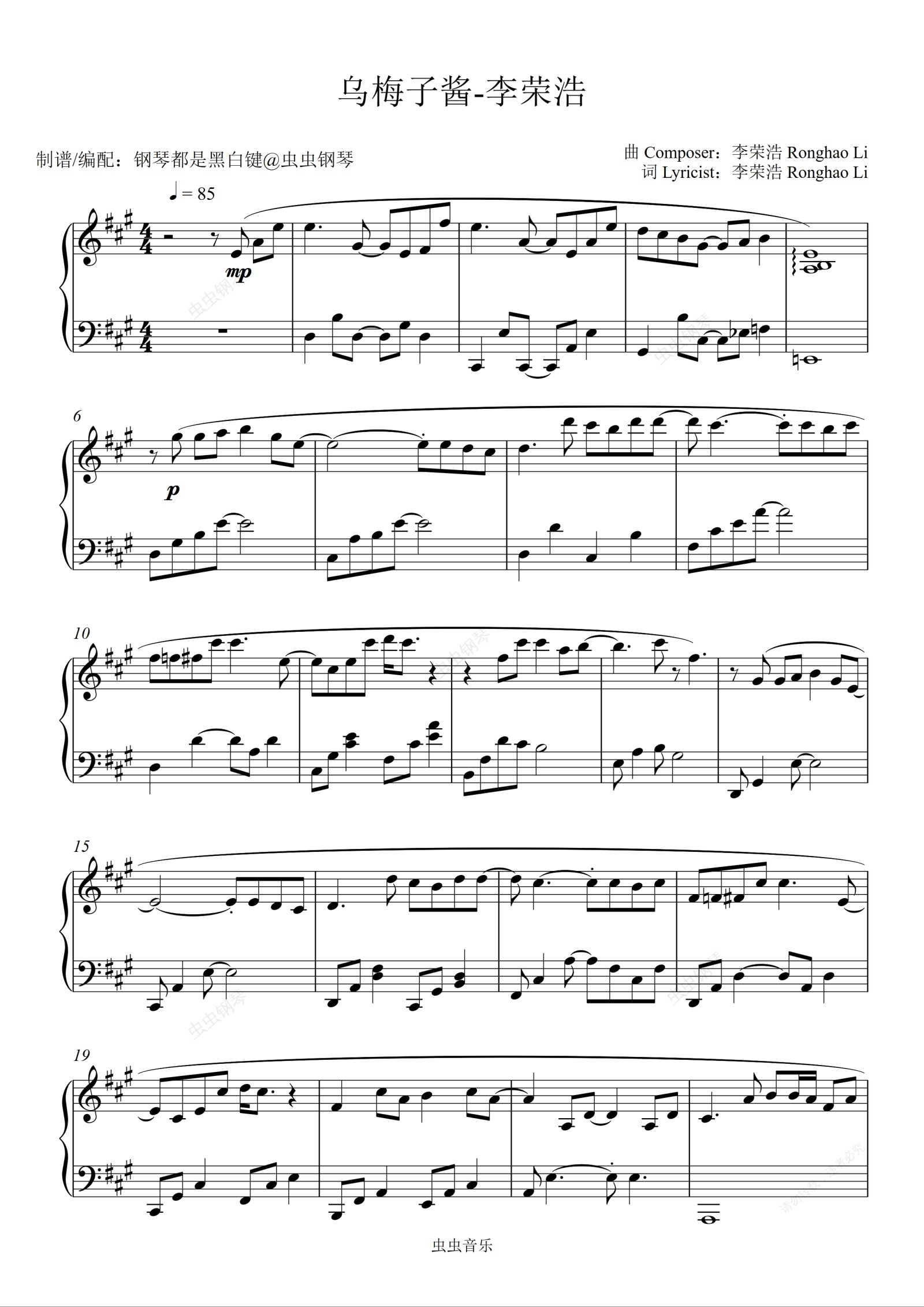 钢琴谱:乌梅子酱-李荣浩 [抒情钢琴演奏版]