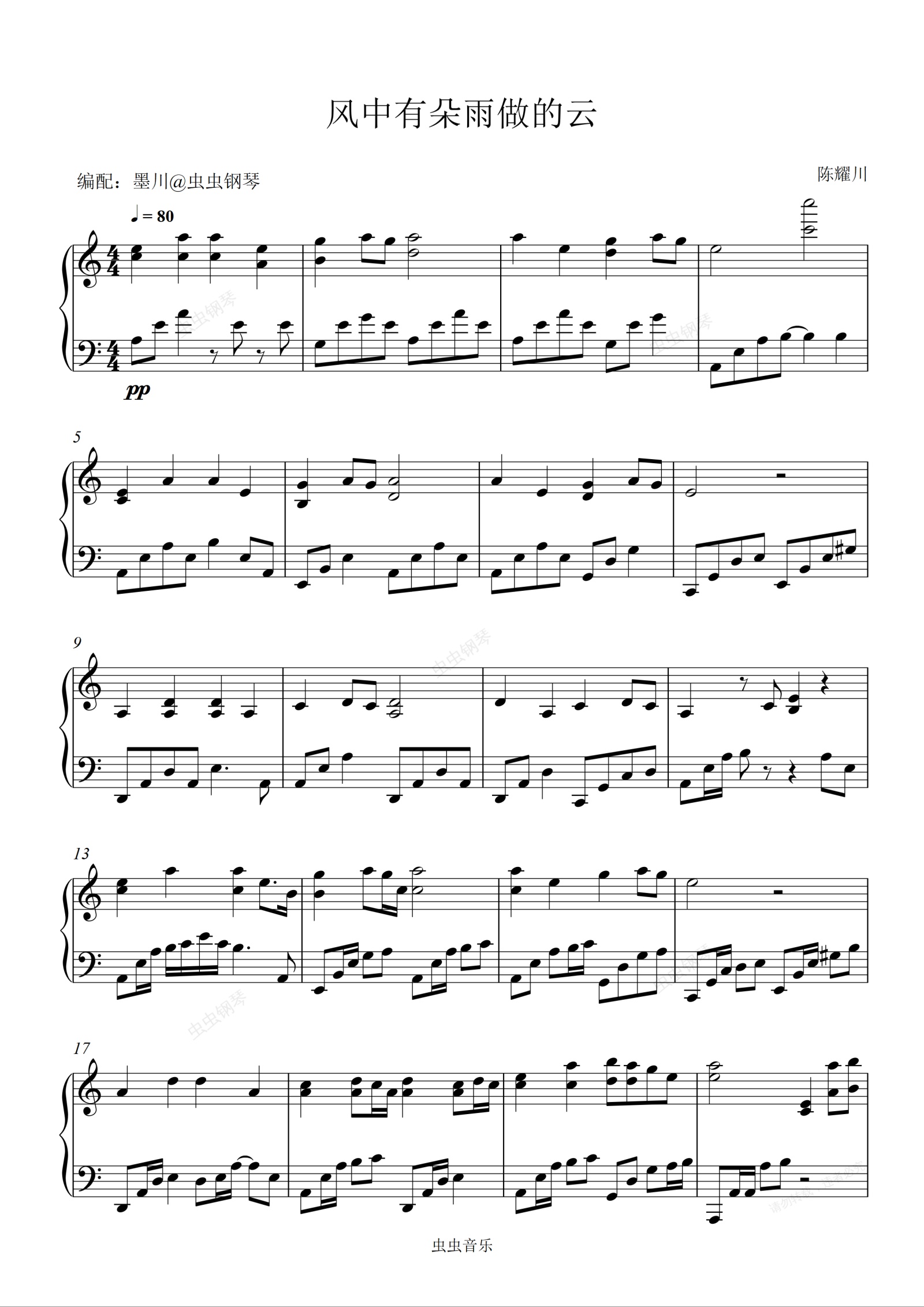 钢琴谱:风中有朵雨做的云—孟庭苇—C调编配
