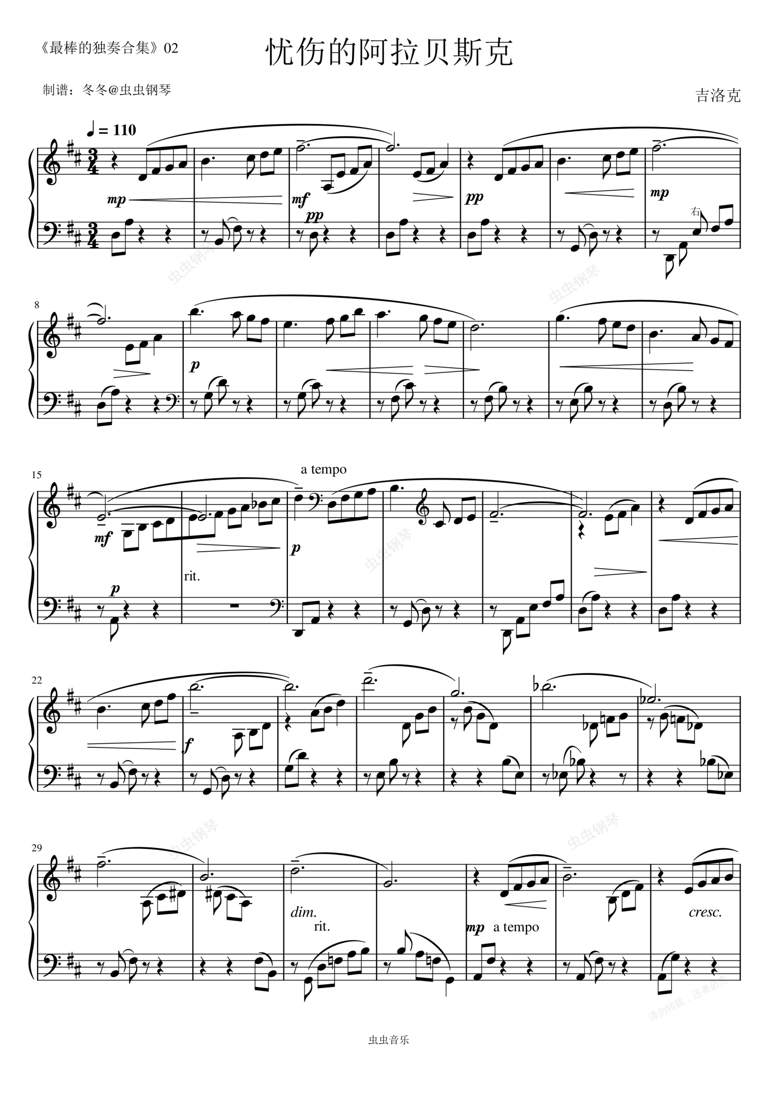 钢琴谱:忧伤的阿拉贝斯克