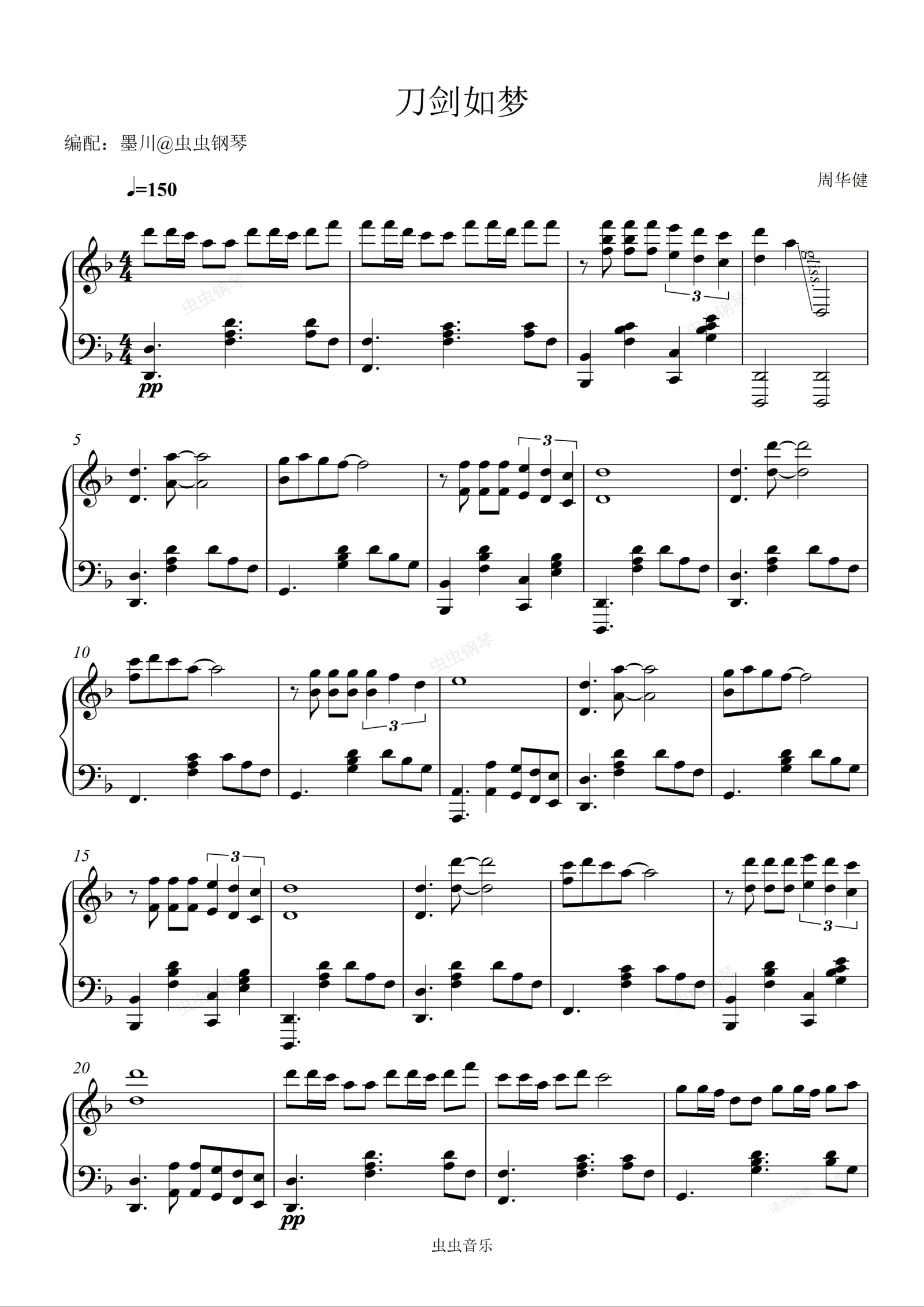 钢琴谱:刀剑如梦—周华健—F调激情演奏