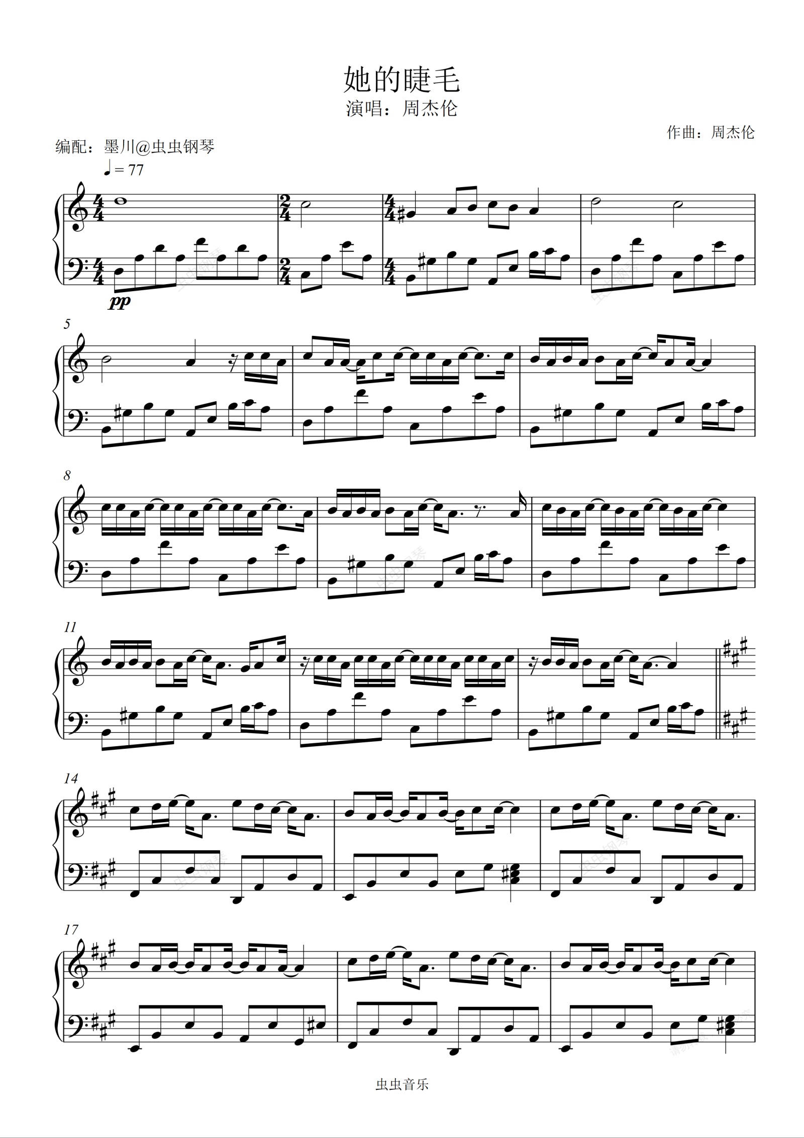 钢琴谱:她的睫毛—周杰伦—C调编配