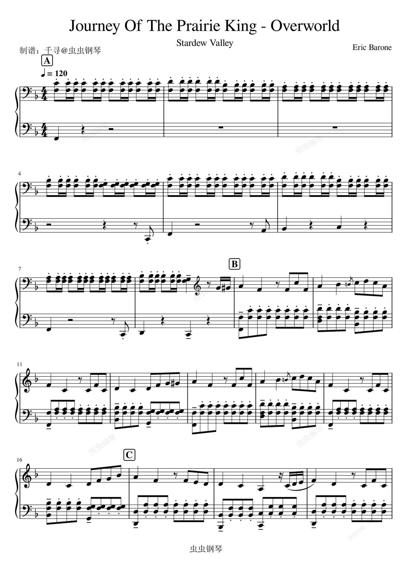 钢琴谱:Stardew_Valley_-_Journey_Of_The_Prairie_King_-_Overworld 星露谷物语
