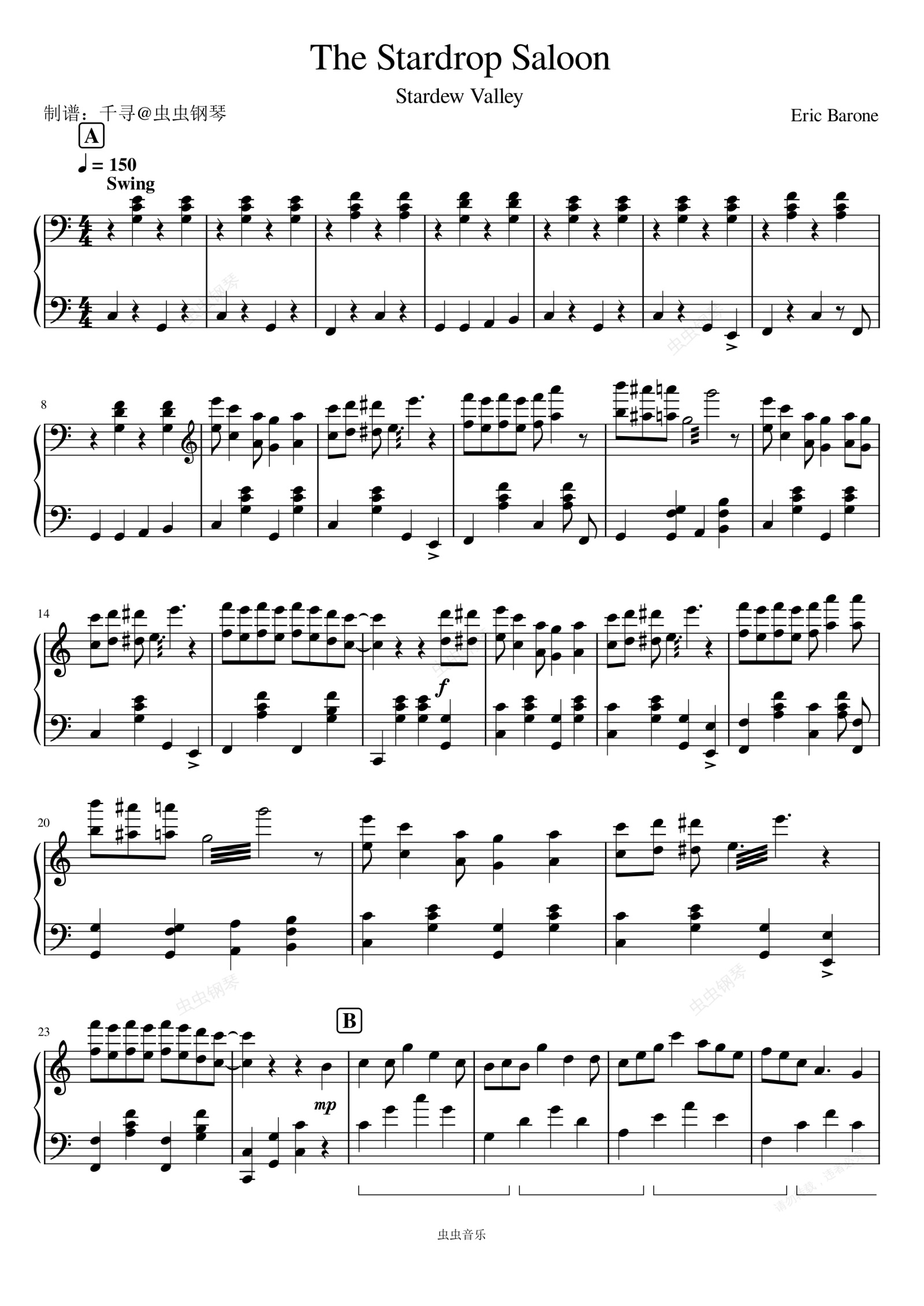 钢琴谱:Stardew_Valley_-_The_Stardrop_Saloon 星露谷物语