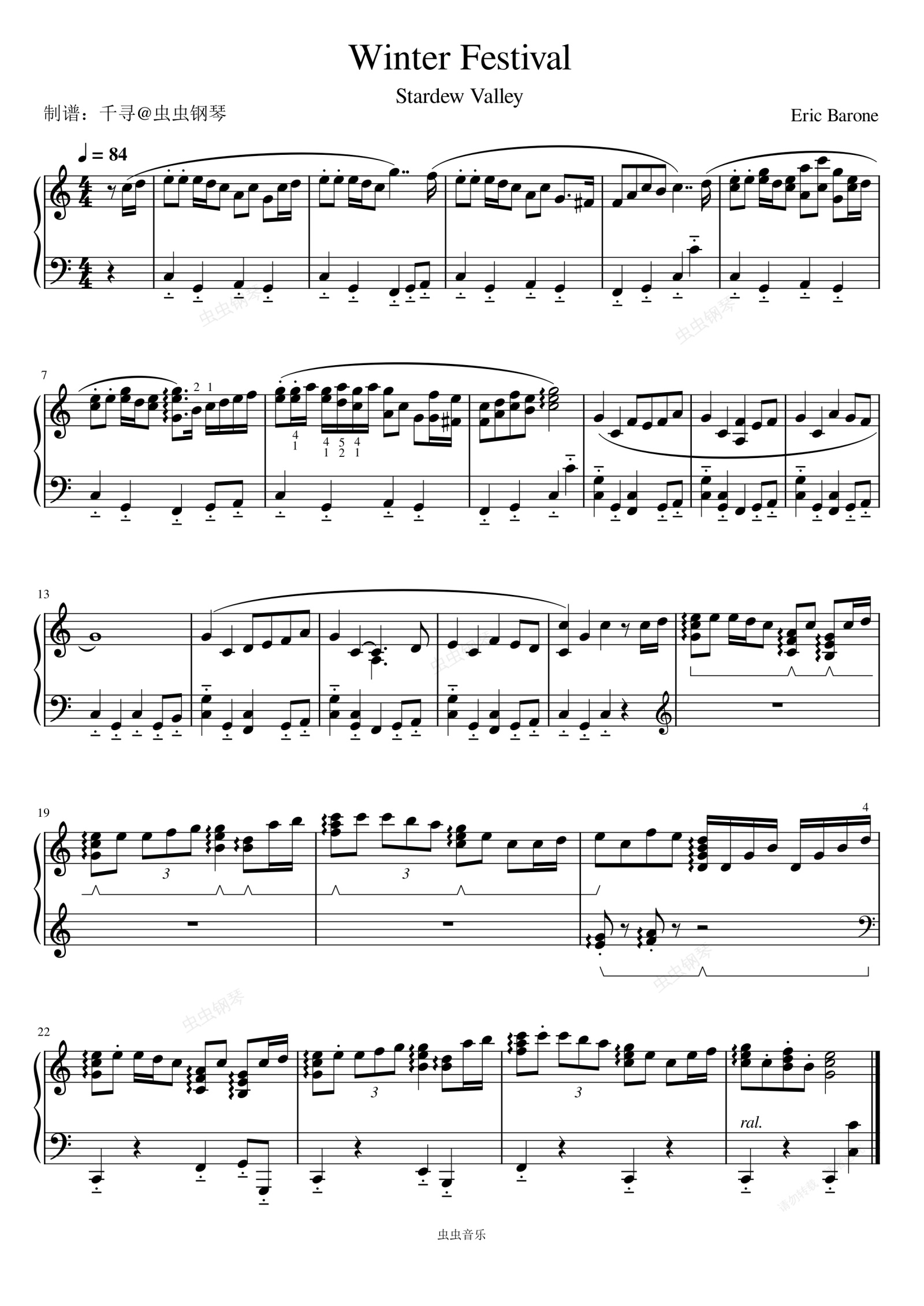钢琴谱:Stardew_Valley_-_Winter_Festival 星露谷物语