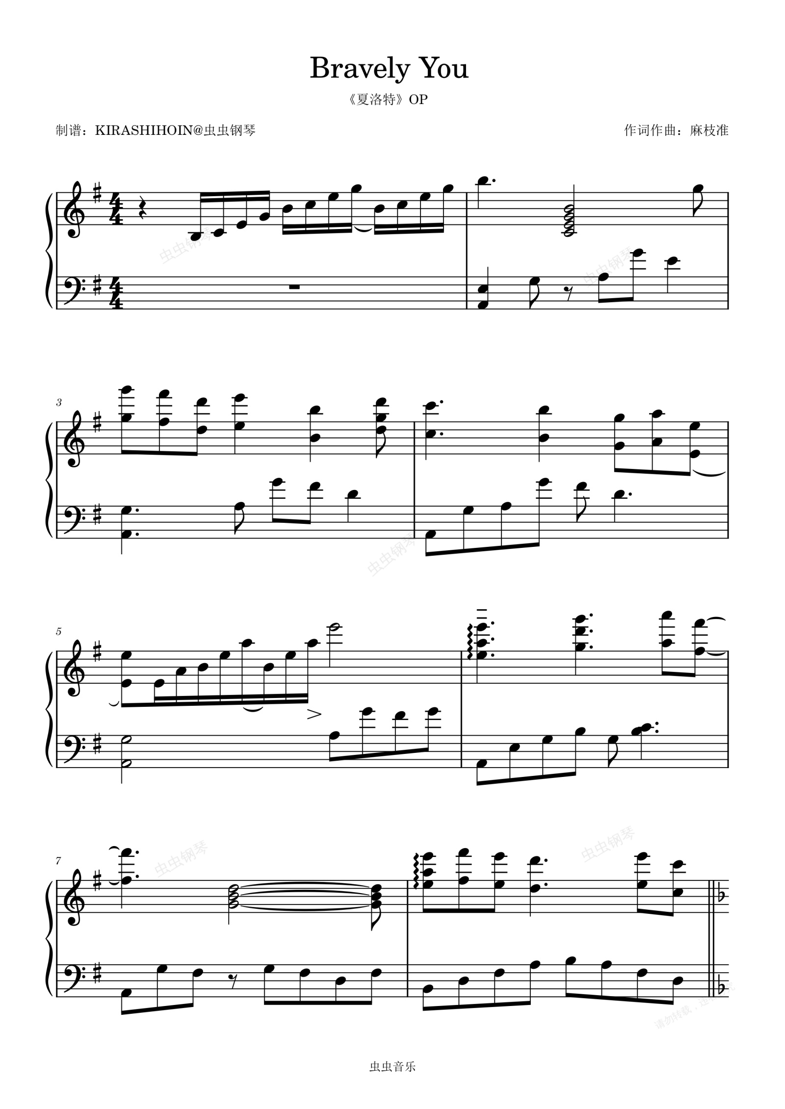 钢琴谱:Bravely You(《夏洛特》OP/片头曲)- Lia