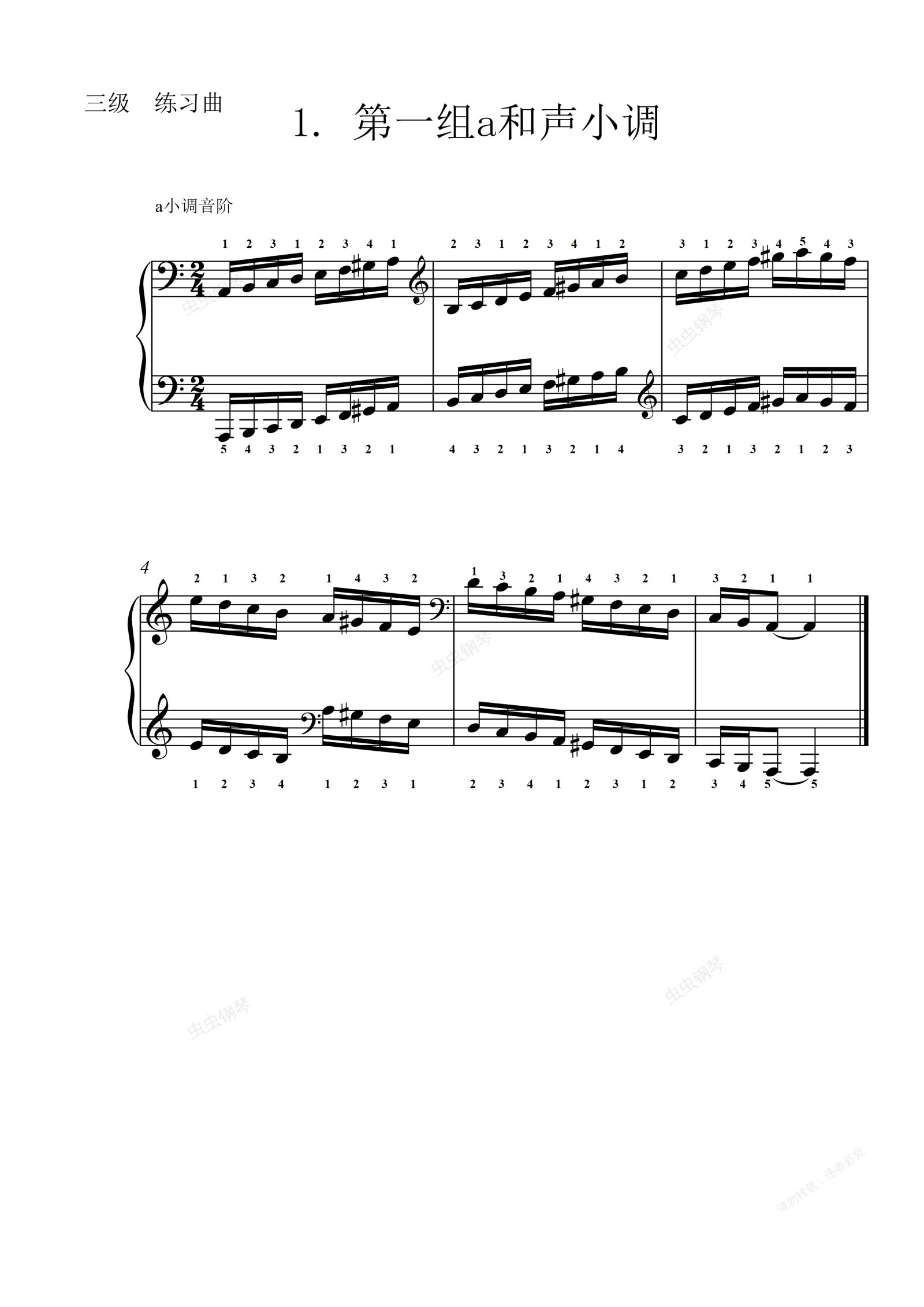钢琴谱:3级-2-a小调音阶