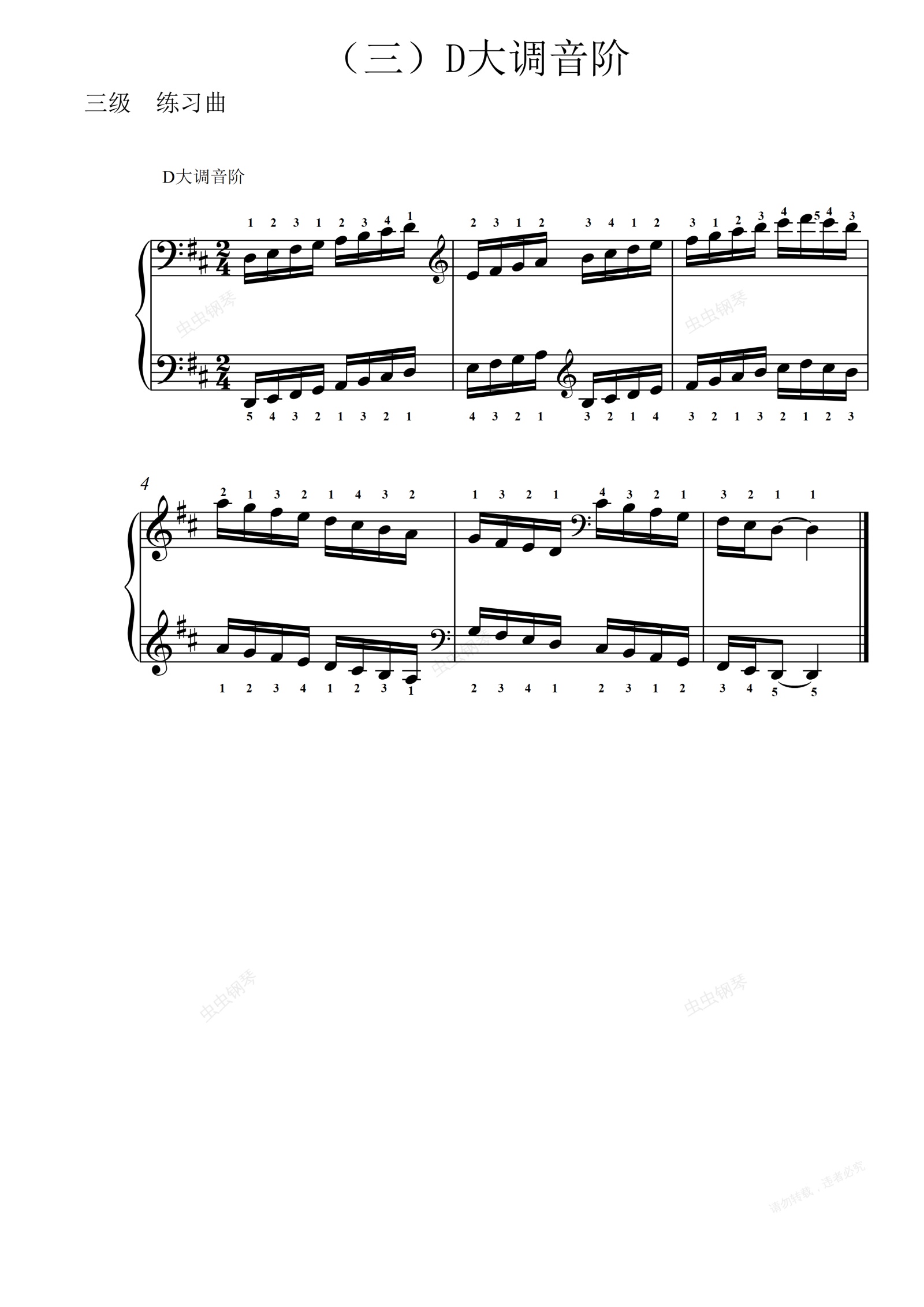 钢琴谱:3级-9-D大调音阶
